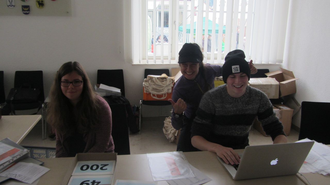 Auch im Wettkampfbüro wird die Schicht gewechselt ... Nur David und Herr Mickert sind von Anfang bis Ende tapfer auf ihren Stühlen.