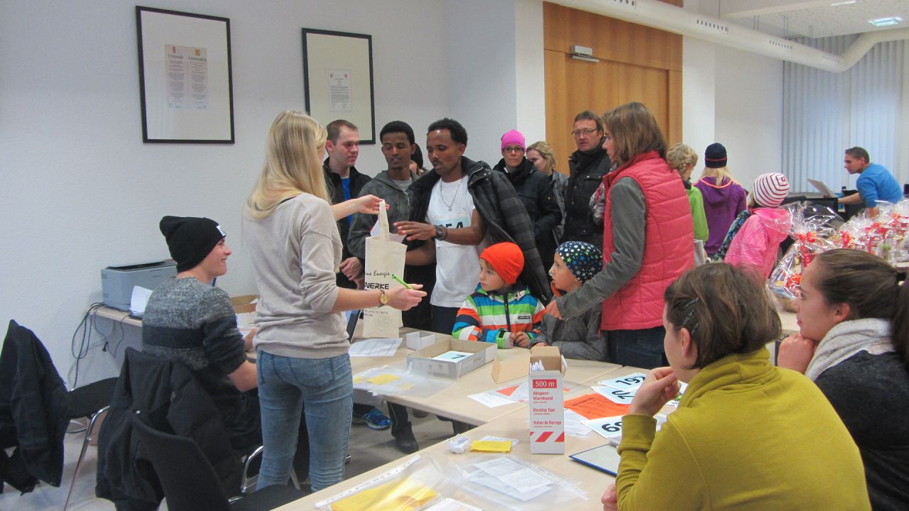 Und während draußen fleißig gelaufen wird, freut man sich drinnen über die große Zahl der Nachmeldungen: Fast 60 Kurzentschlossene holten sich kurz vor dem Start noch eine Startnummer.