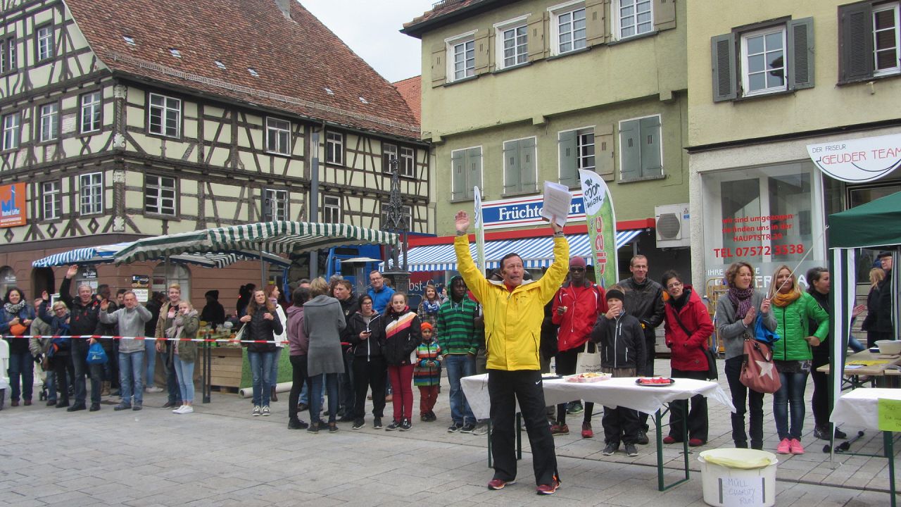 Alle gaben ihr Bestes: Während drinnen im Wettkampfbüro immer neue Anmeldungen in Empfang genommen wurden, stand draußen das Publikum in Scharen in der Fankurve vor dem Rathaus und befeuerte so manchen der