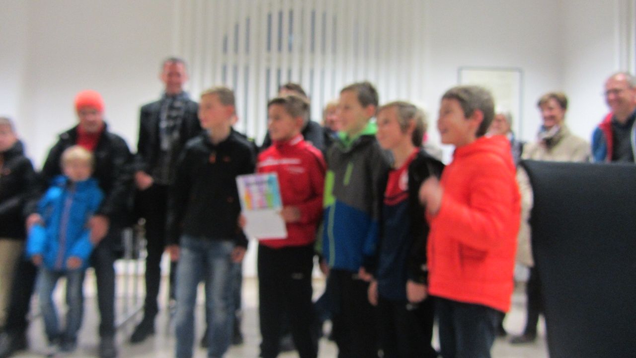Die vier Schülersprecher, ehemalige und aktuelle, waren im Orga-Team und vergeben hier die Preise an die Kinder und Jugendlichen.