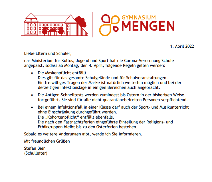 Liebe SchülerInnen, liebe LehrerInnen und liebe SchulleiterInnen der Mengener Schulen,