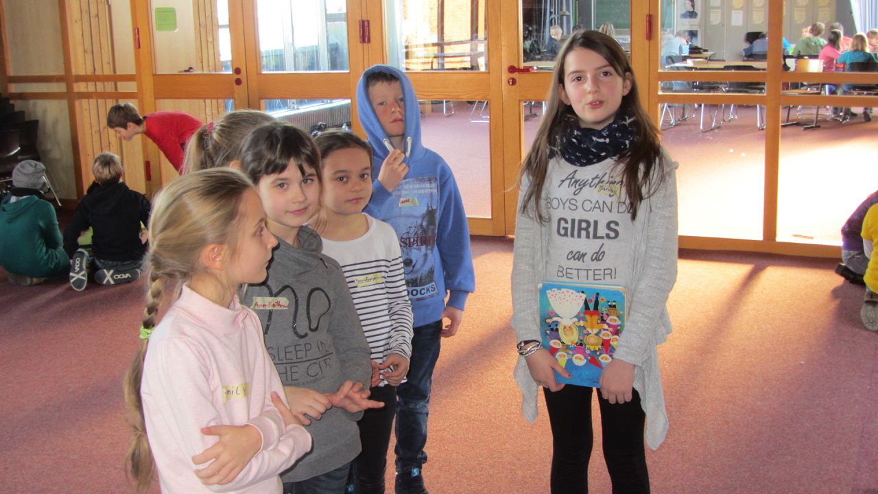Den Auftakt zur diesjährigen Kooperationsrunde mit den Grundschulen der Umgebung machte die Klasse 3b mit ihrer Klassenlehrerin Frau Klein. Sie kam am Donnerstag, dem 21.Januar, zu einer längeren Märchenstunde in die 5a. Die Fünftklässler lasen ihnen zu Beginn eigene Märchen und Märchenparodien vor und ließen die Jüngeren zu einem Quiz antreten.