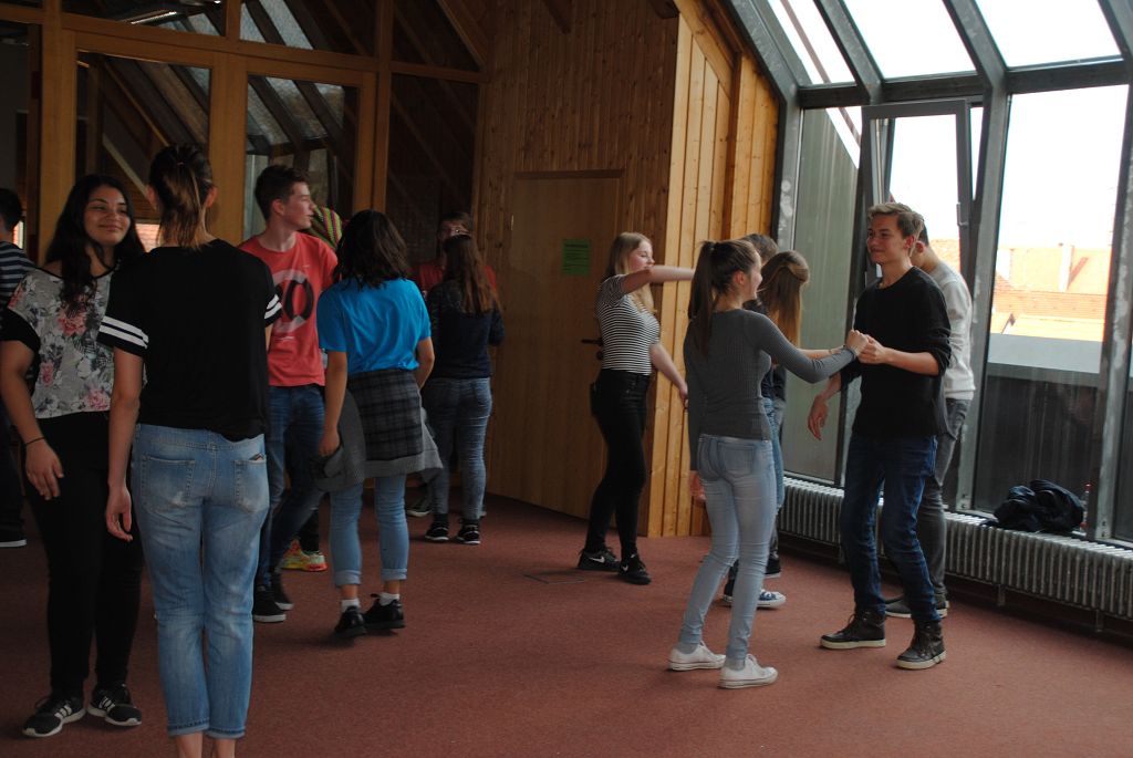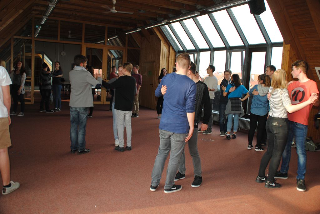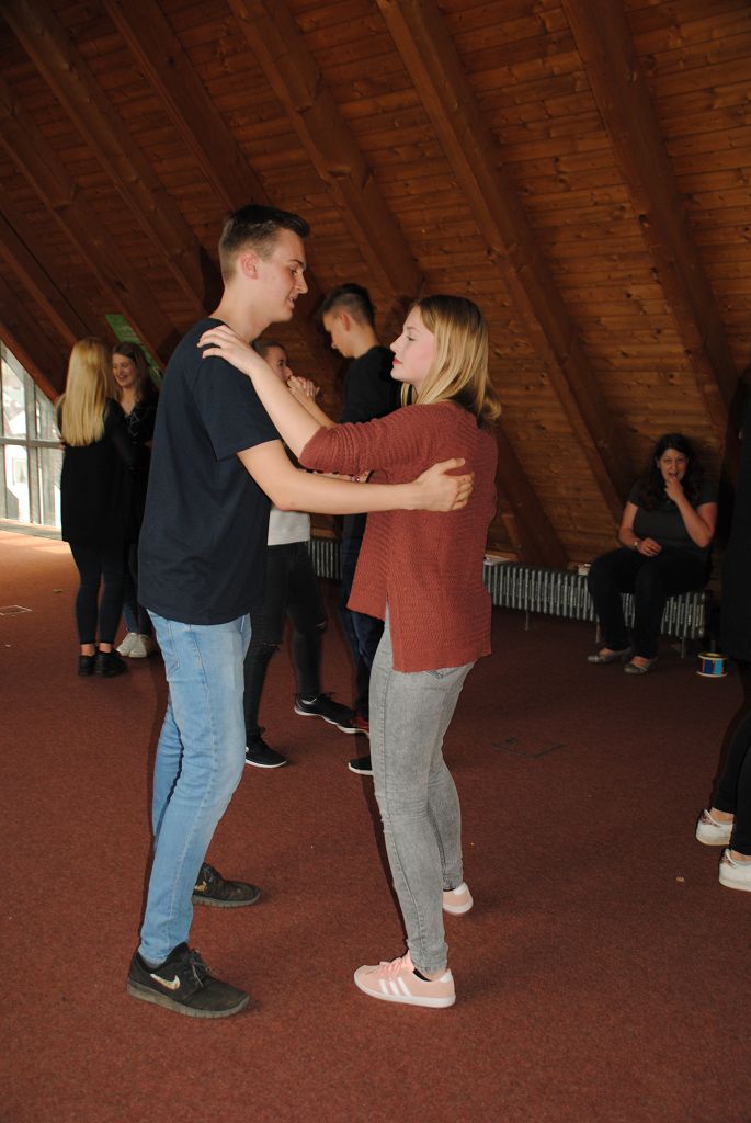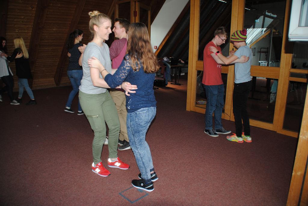 Im Rahmen unseres Projekts „BOGY Knigge“ erlernten unsere Zehntklässler an zwei Nachmittagen Grundlagen in Sachen Tanz. Angesichts der flotten Rhythmen verflogen Schüchternheit und Zurückhaltung recht schnell und Herr Sawilla, Tanzlehrer von der Tanzschule Bianka Fackler, vermittelte auf humorvolle Art Schritte, Drehungen und die richtige Haltung für langsamer Walzer, Disco Fox und Merengue. Somit sind unsere Schüler für zukünftige Tanzveranstaltungen gerüstet.