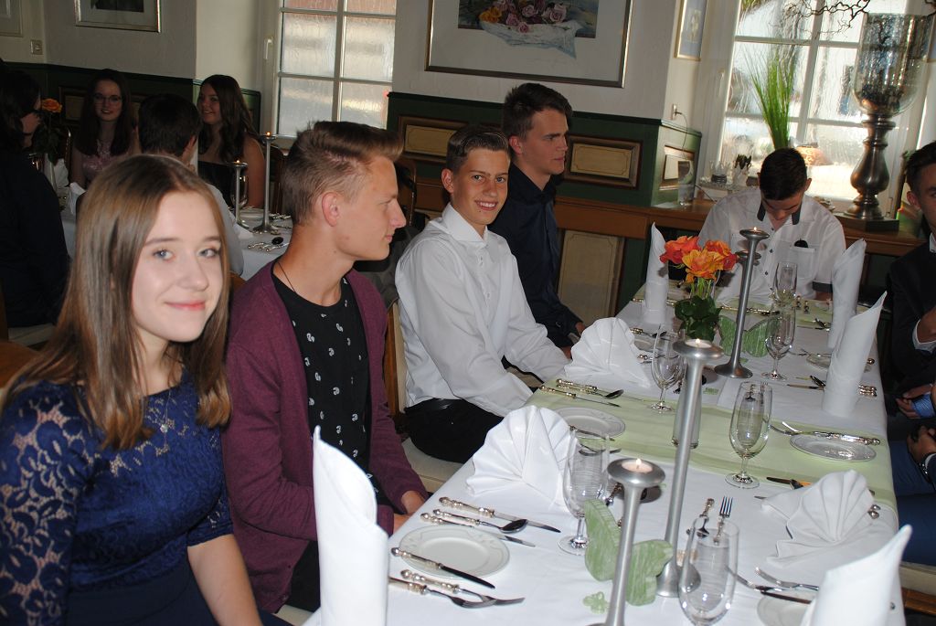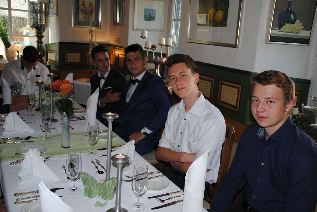 Am 9. Juli 2019 fand das alljährliche BOGY-Knigge-Abschlussessen der Zehner in der Brunnenstube in Scheer statt. Nachdem im vergangenen Jahr viele BOGY-Inhalte vermittelt wurden, beispielsweise wie man Bewerbungsunterlagen verfasst, das einwöchige Praktikum, der Ablauf eines Bewerbungsgespräch, ein Tanzkurs und Etikette bei Tisch, war nun das Abschlussessen an der Reihe.