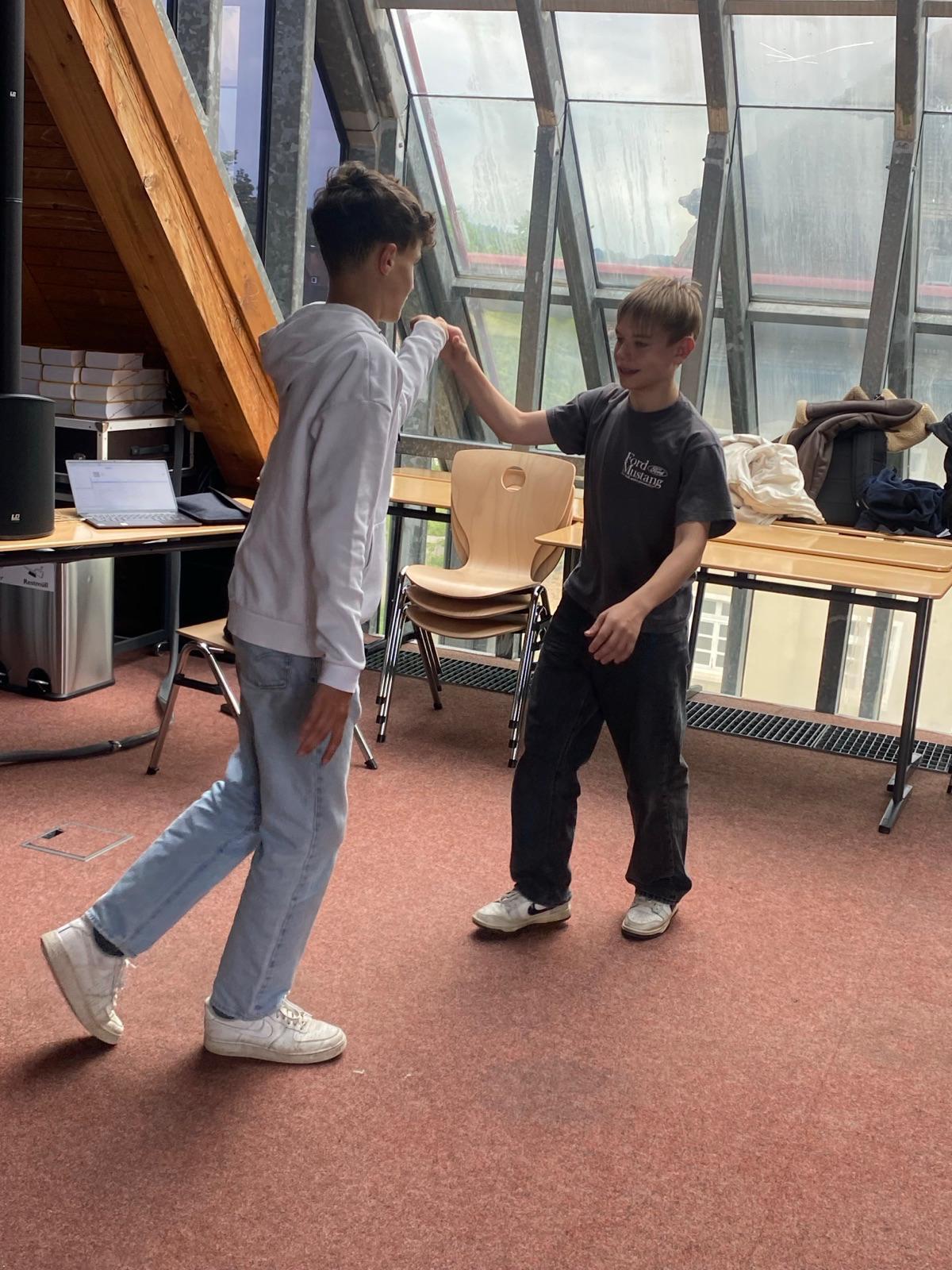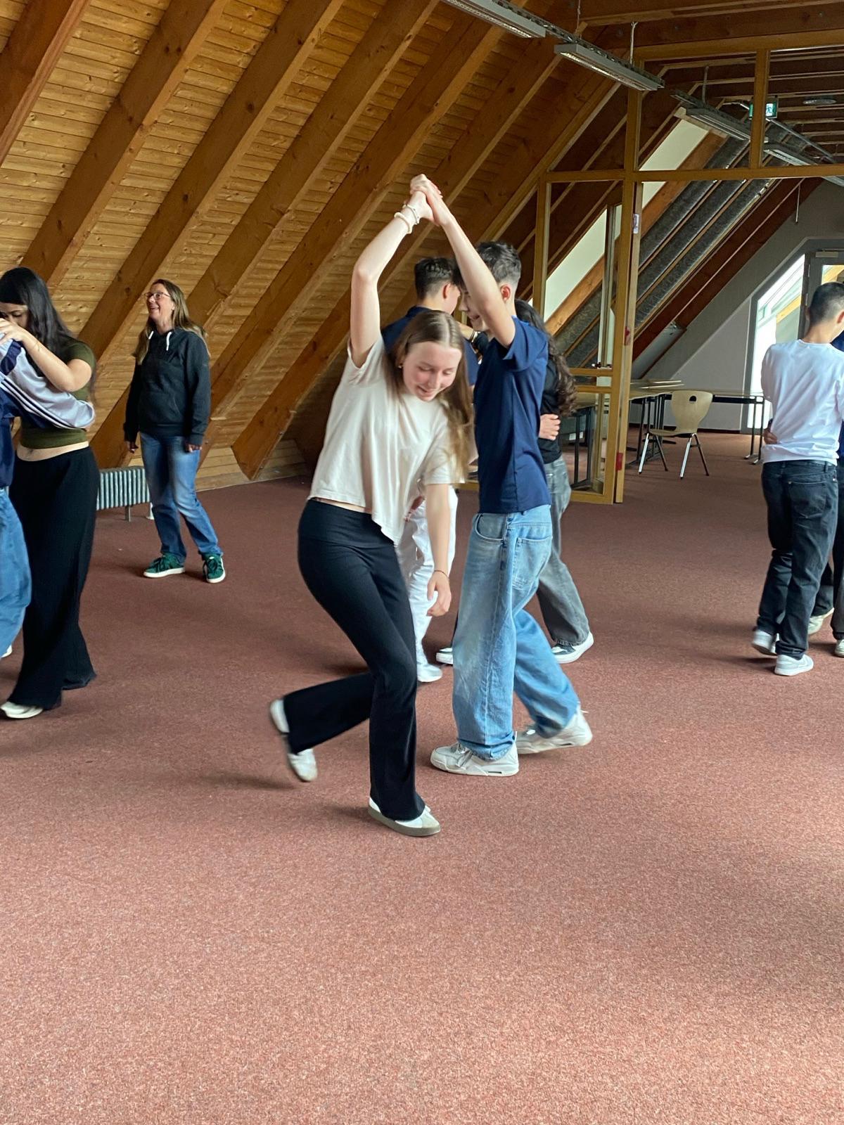 Anfang Mai haben unsere Zehntklässler an zwei Nachmittagen einen Schnuppertanzkurs mit Frau Weber von der Tanzschule Dance & More (Salem) absolviert. Neben Discofox, langsamem Walser und Salsa haben sich die Schüler*innen dabei auch mit korrekten Umgangsformen bei Tanzveranstaltungen auseinandergesetzt.