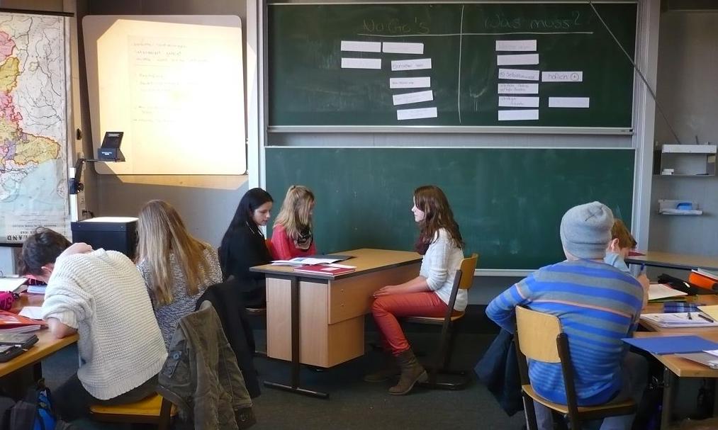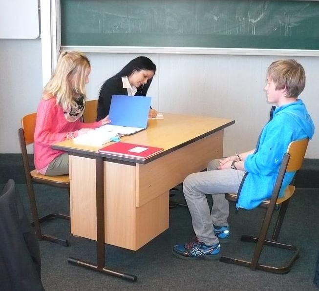 Am Dienstag (17.12.13) fand in der 9a ein Bewerbungstraining für die spätere Berufswahl statt. Organisatorin Nina Wild (9a, im Bild Mitte) vermittelte während ihrer GFS zusammen mit ihrer Bekannten Frau Hirsch (im Bild links) von der Firma Silit-Werke GmbH & Co. KG viele detaillierte Informationen, die den Schüler bislang noch nicht bewusst waren.