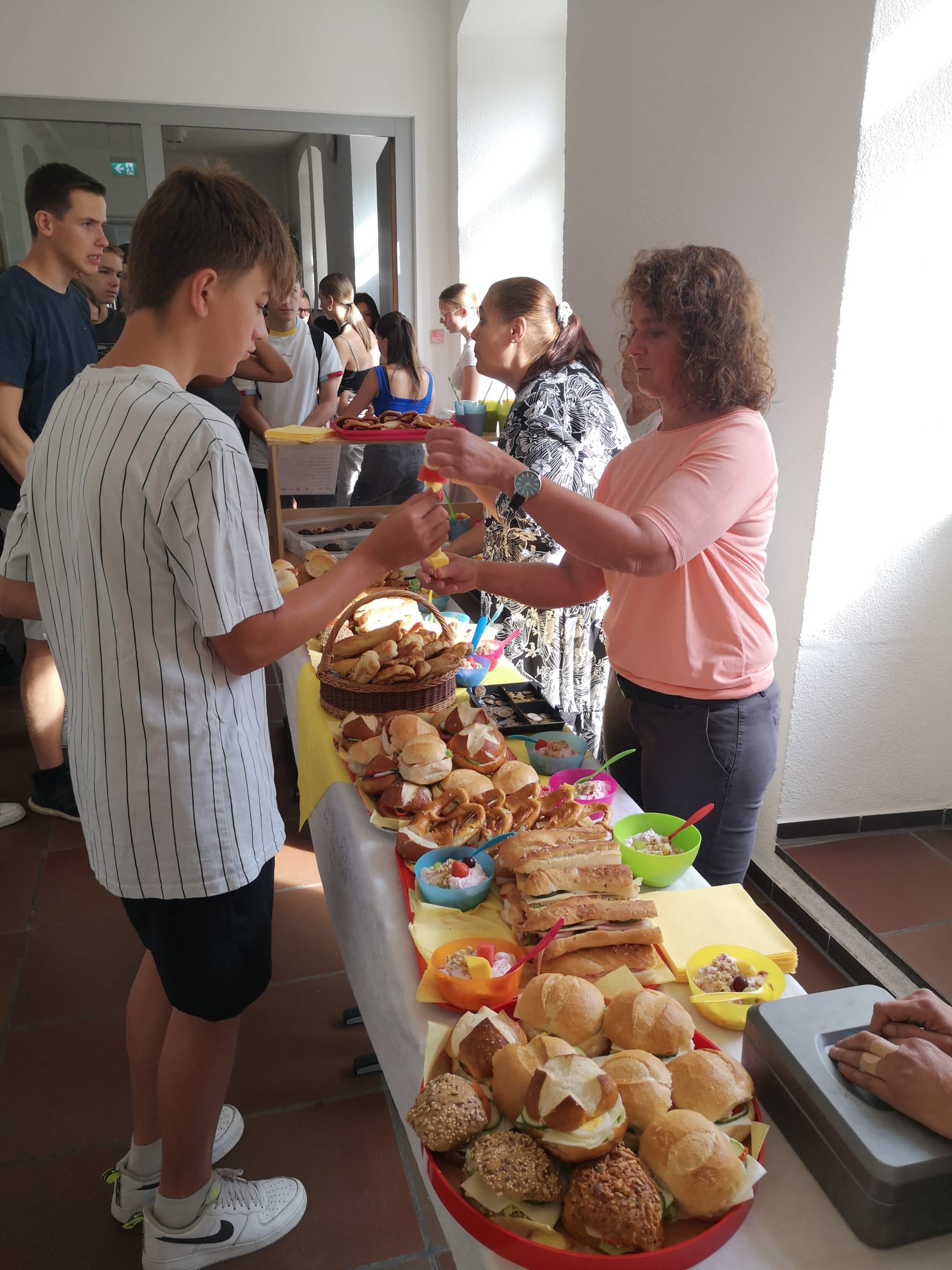 Das "Gesunde Pausenbrot" wurde wieder zum Leben erweckt und ist in eine neue Runde gestartet: Am Mittwoch, den 12. Juli durften wir uns in der ersten großen Pause wieder auf verschiedene gesunde Leckereien freuen, die die Eltergruppe für uns zubereitet und zu schülerfreundlichen Preisen verkauft hat! Wir bedanken uns herzlich für Ihr tolles Engagement!