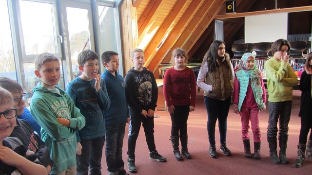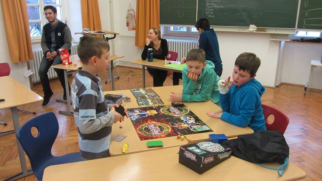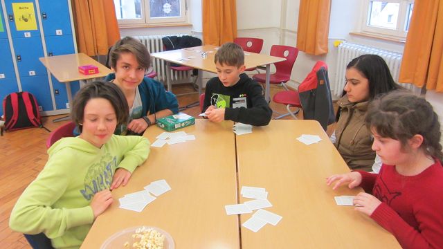 Zu einem Spielenachmittag mit ihren Buddys trafen sich am Mittwoch, dem 3. Februar, die beiden fünften Klassen. Zum Auftakt wurden zwei Spiele mit allen zusammen im Musiksaal gespielt, danach hatte jeder die Auswahl zwischen drei Räumen: