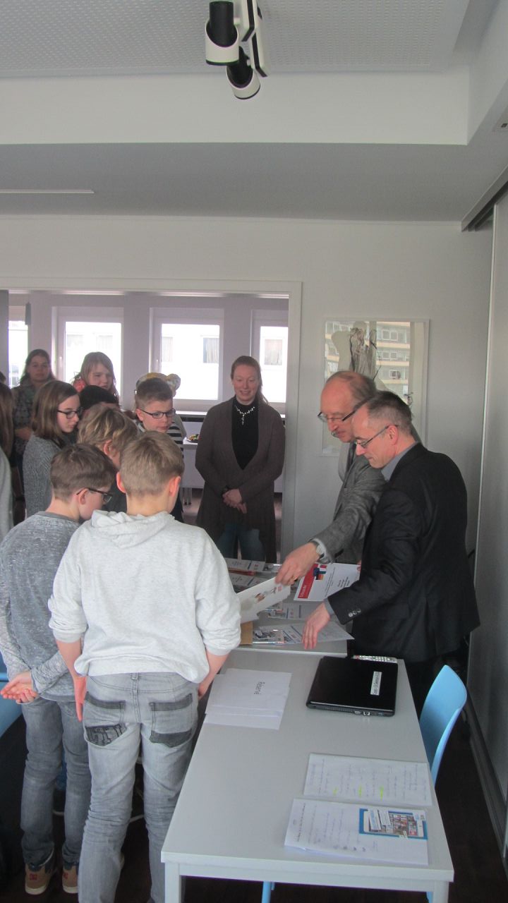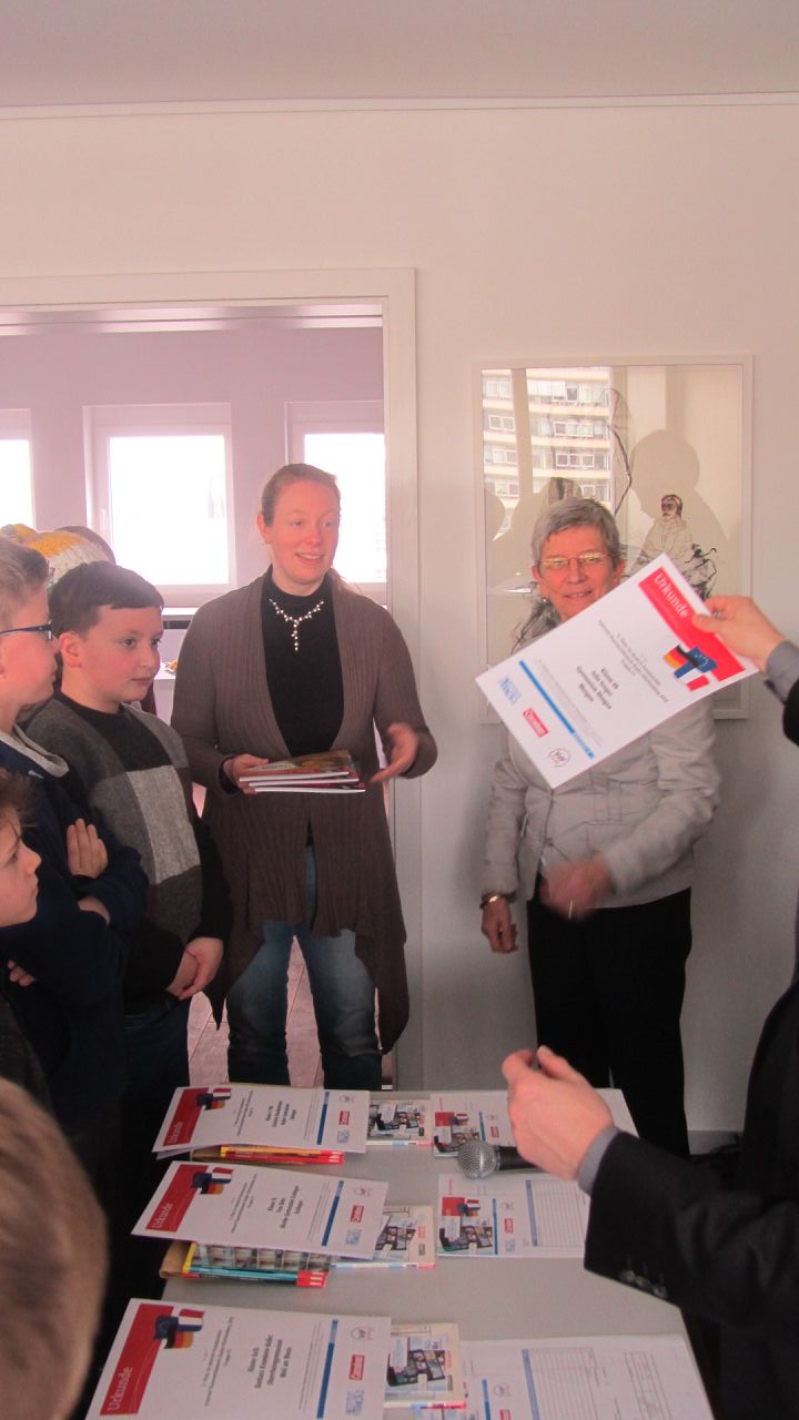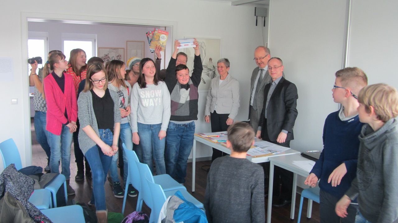 Die Mitarbeiter am Institut français in Stuttgart freuten sich am vergangenen Freitag (26.02.) über hohen Besuch: Die Schüler der 6b waren mit ihrer Französischlehrerin Frau Seeger und Schulleiter Herrn Bien zu einer Preisverleihung angereist. Die Sechtsklässler hatten etwa einen Monat zuvor am Internetwettbewerb von Institut français und dem Schulbuchverlag Cornelsen zum Tag der deutsch-französischen Freundschaft am 22. Januar 2016 teilgenommen. Über Internetrecherchen konnten sie einen Großteil der gestellten Aufgaben richtig lösen und belegten insgesamt den dritten Platz. Herzlichen Glückwunsch!