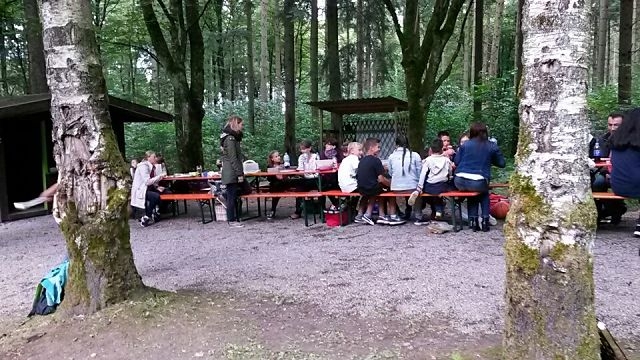 aus der 9. Klasse, und gegen Ende des gemeinsamen Abends wurde sogar noch ein Klassenbaum auf der Lichtung gepflanzt, den eine der Familien bei einer Tombola gewonnen hatte. So steht schon fest, dass die Soppenhütte wohl noch öfter zum Ausflugsziel der Klasse wird, allein schon um nach dem Gedeihen des Bäumchens zu schauen.