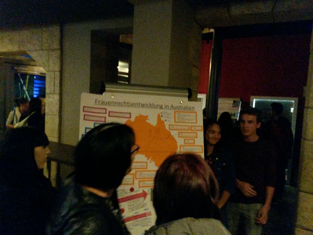 Die Schülerinnen und Schüler der Jahrgangsstufe 2 hatten sich zuvor im Geschichtsunterricht intensiv mit dem Thema Frauenwahlrecht beschäftigt. Sie zeigten dies durch verschiedene Infotafeln über den Kampf für das Frauenwahlrecht in verschiedenen Ländern der Welt, die im Eingangsbereich des Kinos aufgestellt waren. Nach einer kurzen Einführung startete der spannende und mitreißende Film.