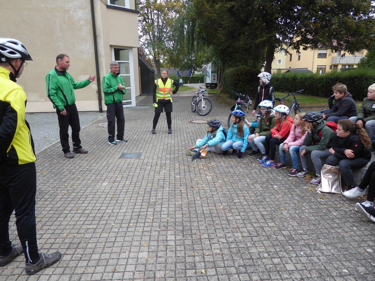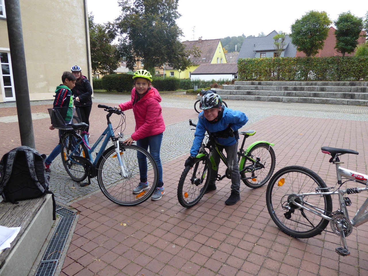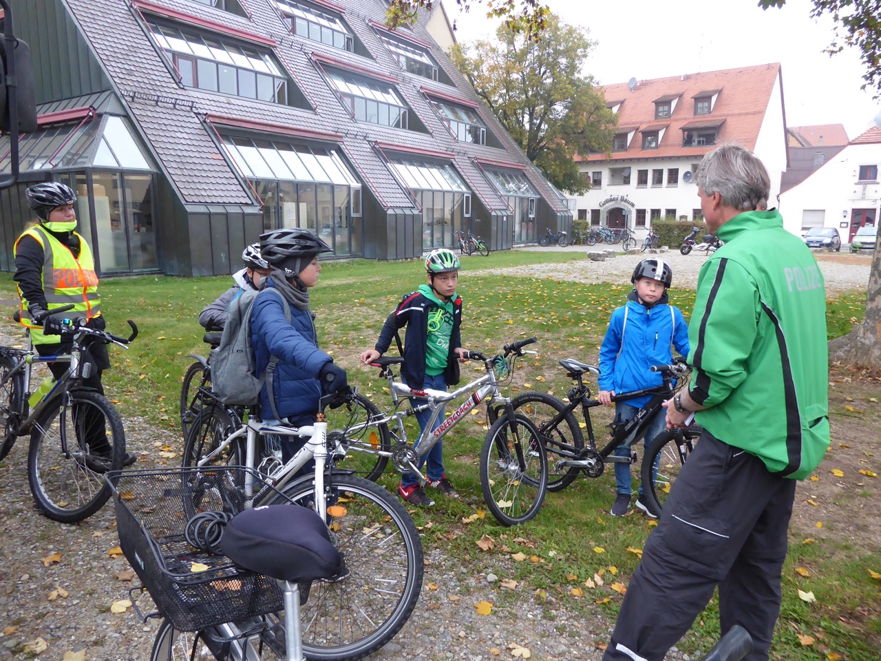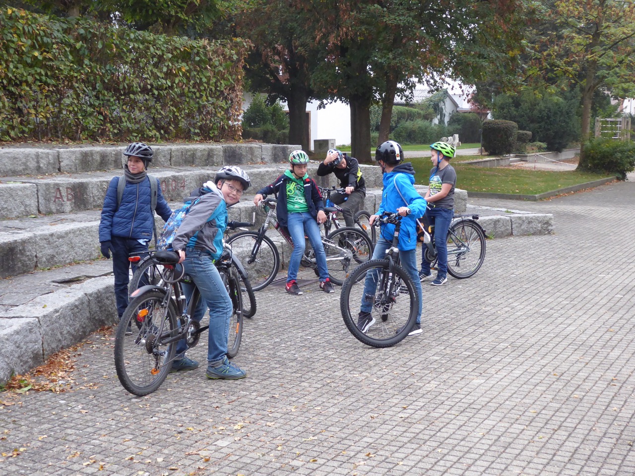 In den ersten beiden Stunden hatten wir Theorie-Unterricht bei Herrn Hinz. Wir befassten uns hauptsächlich mit den Gefahren und Folgen von Fahrradfahren ohne Helm. Anschließend wurden wir in vier Gruppen aufgeteilt, die in unterschiedlicher Reihenfolge an den verschiedenen Stationen arbeitete: