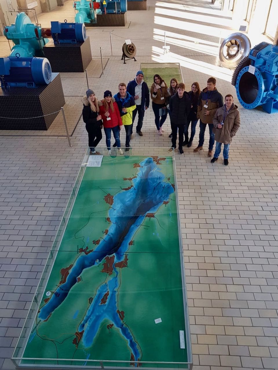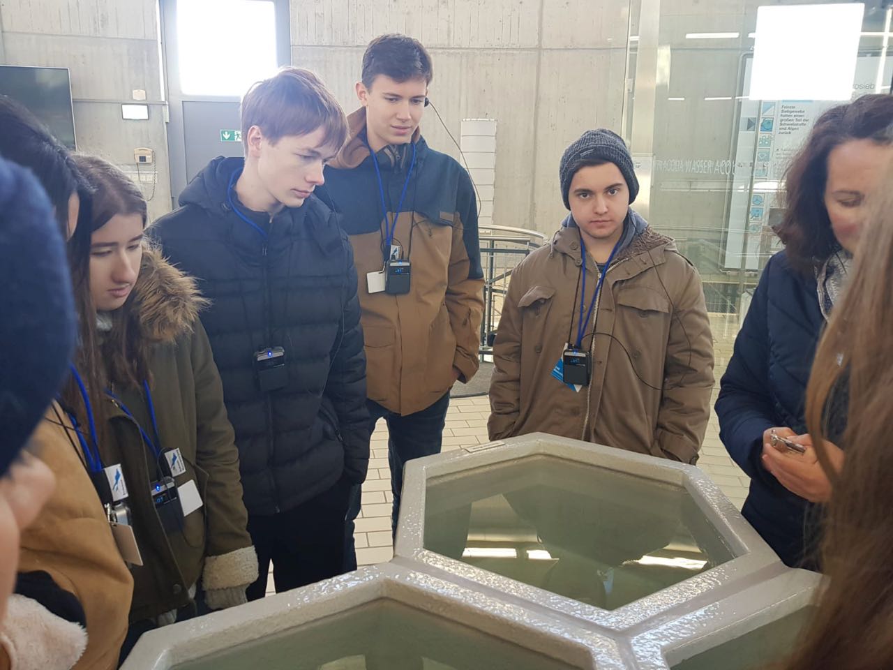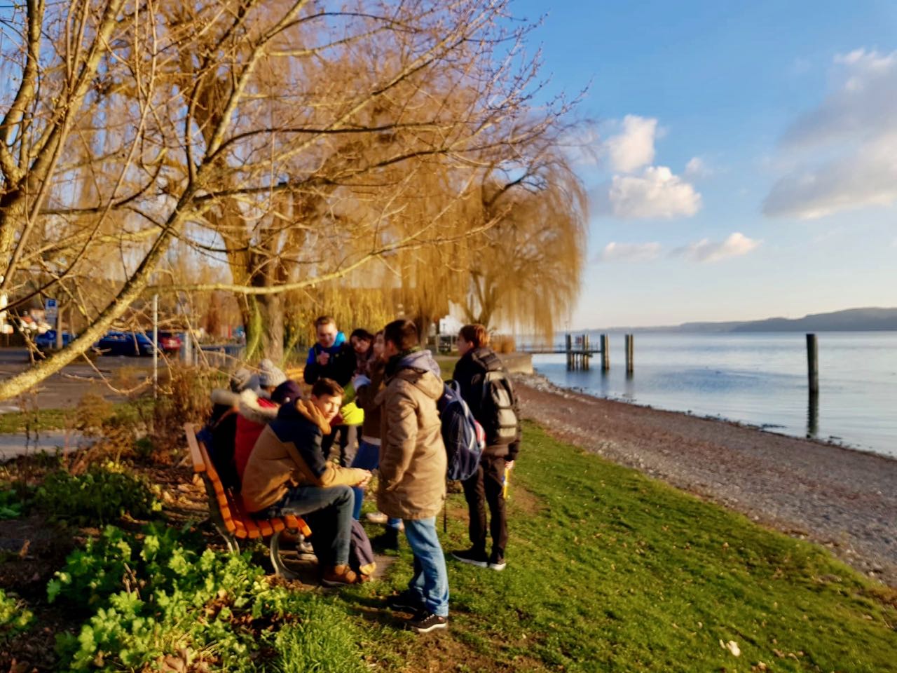 Schon früh startete der Erdkundekurs der Jahrgangsstufe 2 mit Herrn Mickert, am Mittwoch, dem 12.12., um die Wasserwerke in Sipplingen zu besichtigen. Auf der kleinen Wanderung vom Bahnhof Sipplingen hinauf zu der Anhöhe, wo sich die Wasserwerke befinden, genossen die Schüler den herrlichen Anblick des Bodensees im Sonnenschein.
