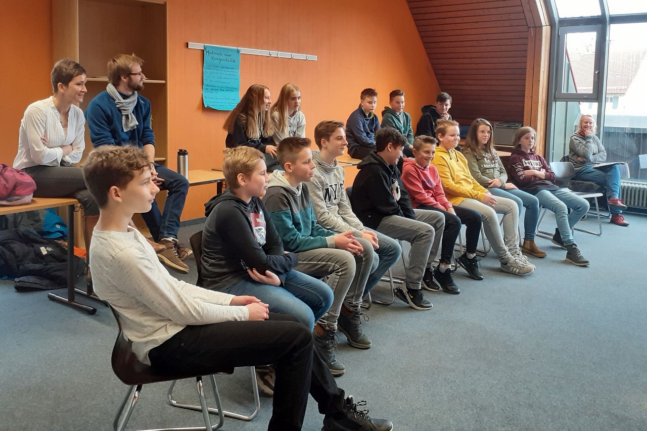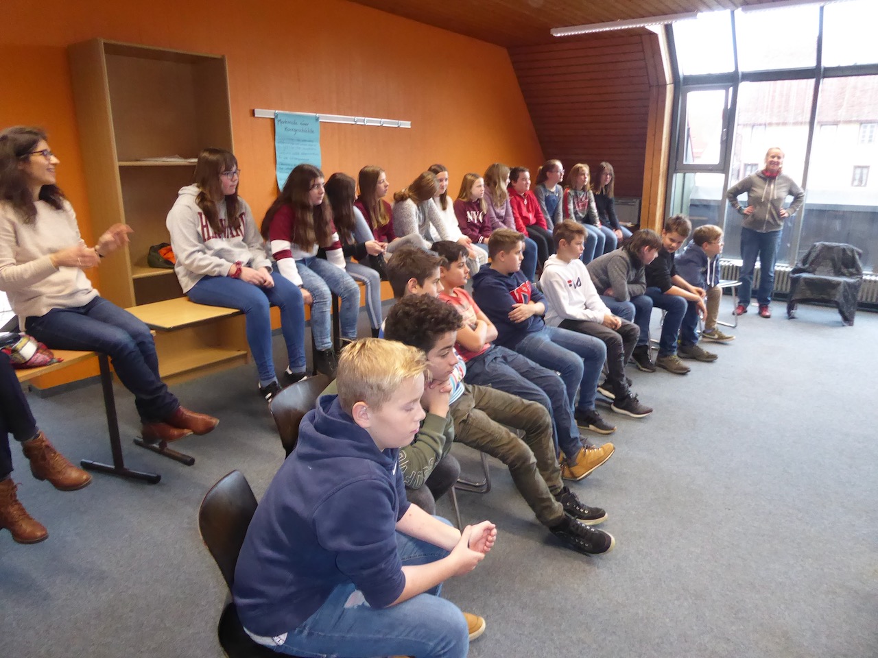 Gefördert wird dieses Theaterprojekt durch das Sonderprogramm "Gesellschaftlicher Zusammenhalt -Förderung von künstlerischen und kulturellen Projekten" des Ministeriums für Wissenschaft, Forschung und Kunst BadenWürttemberg. Es gab zwei Aufführungen mit anschließendem Gespräch für die Klassen 7a und 7b.