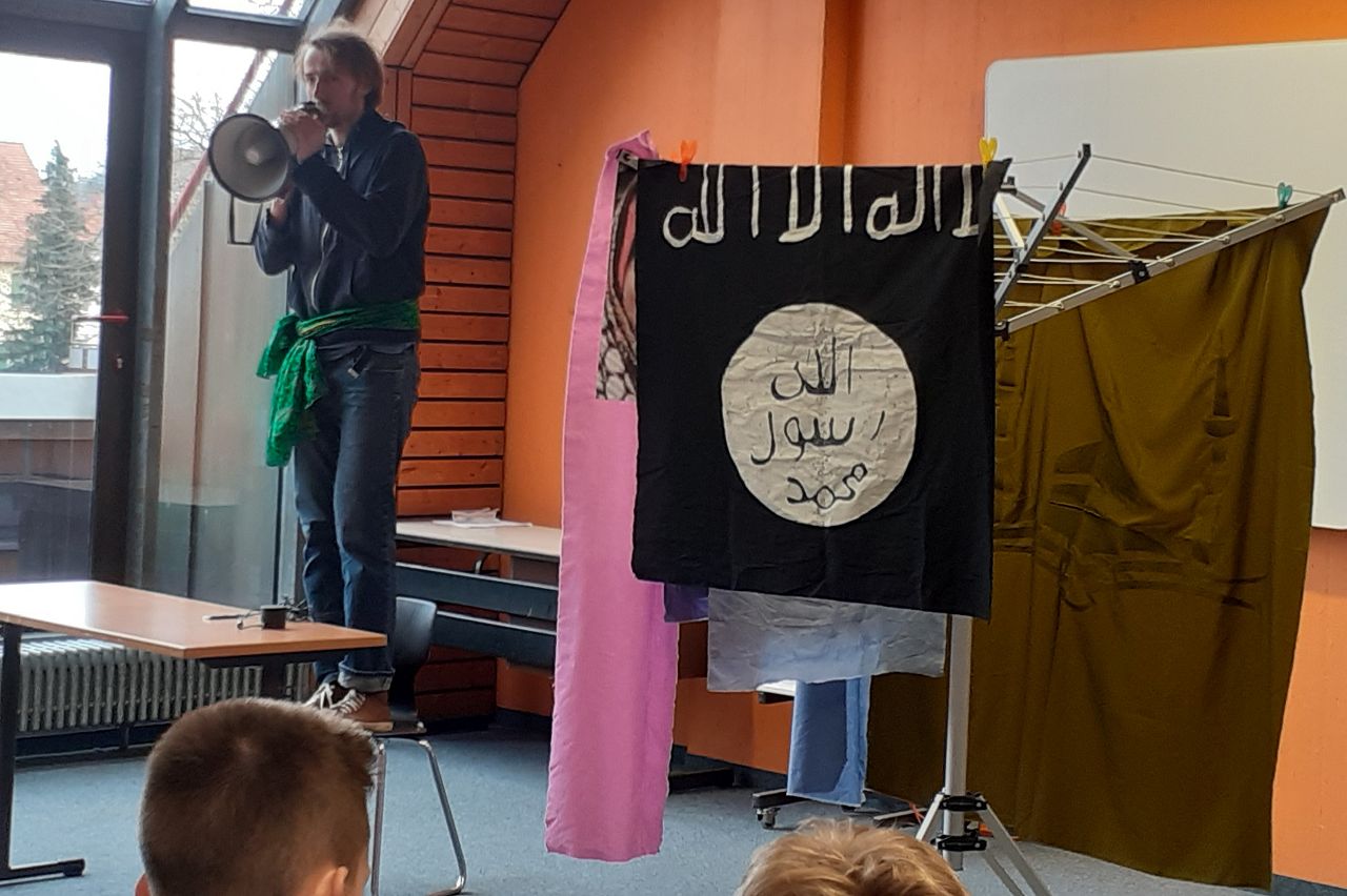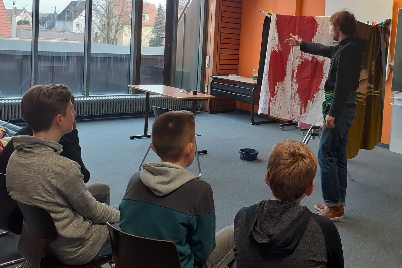 Theater Lindenhof führte das Klassenzimmerstück am Gymnasium Mengen auf.