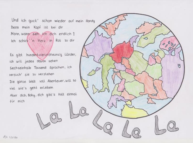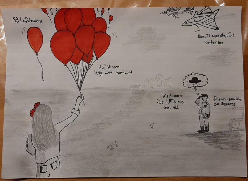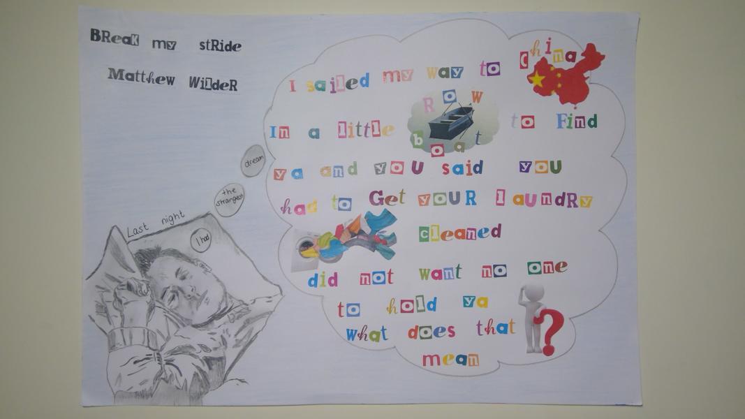 ...durften die Achtklässler als jüngstes BK-Projekt von zu Hause aus gestalten. Ihr Arbeitsauftrag: Wähle ein Lied und daraus eine Textpassage aus. Gestalte zu dieser Textpassage ein passendes Bild, worin der Text integriert wird. Seid ihr gespannt, wie so etwas dann aussieht? Hier könnt ihr euch die tollen Werke der Achter anschauen: Erratet ihr die Songtitel?