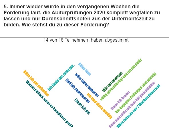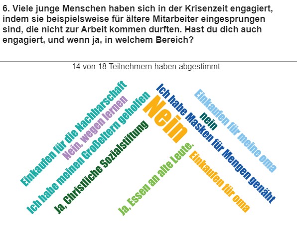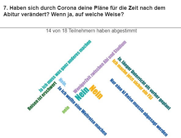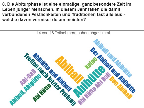 Umfrageergebnisse: Herzlichen Dank an die Schüler/innen der J2, dass sie uns so kurz vor dem Abi noch ihre Zeit geschenkt haben! Mai 2020