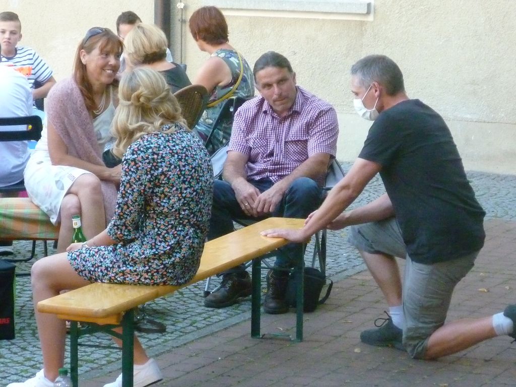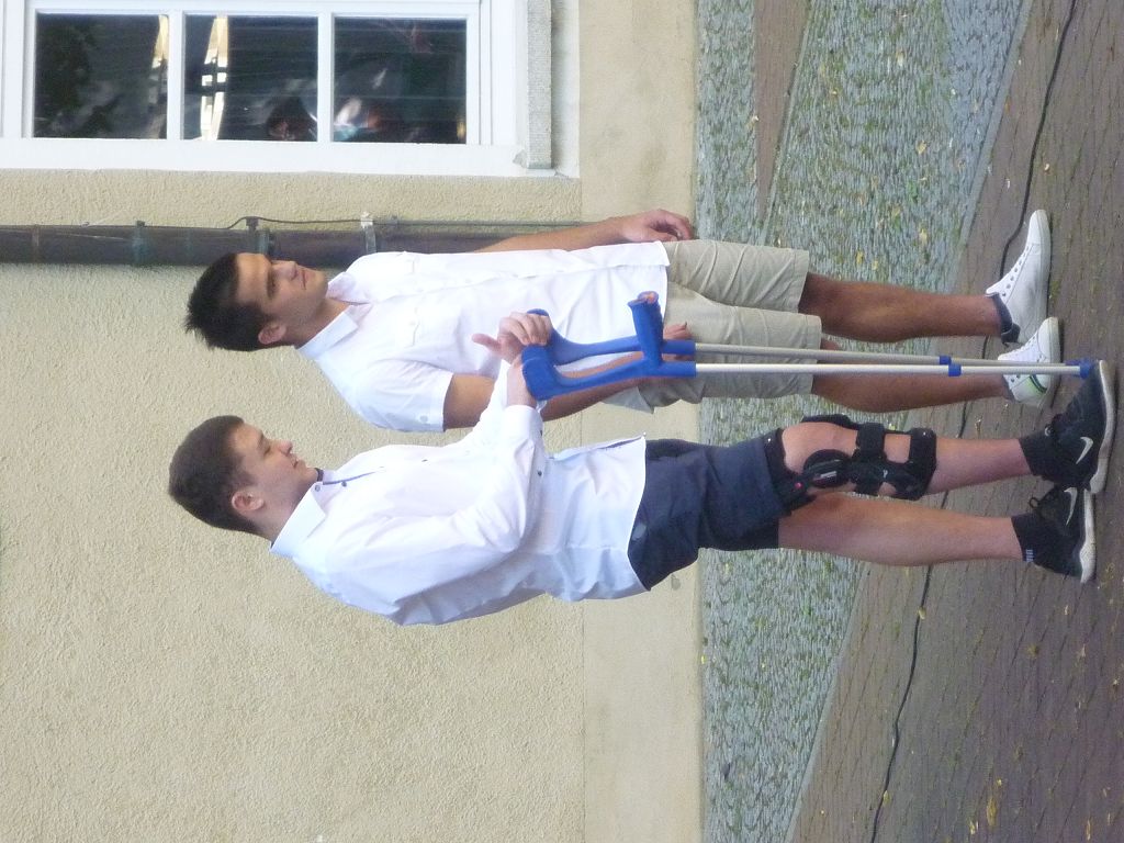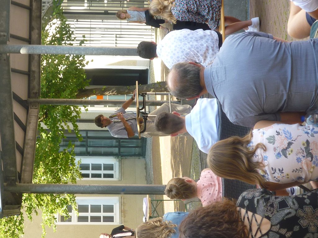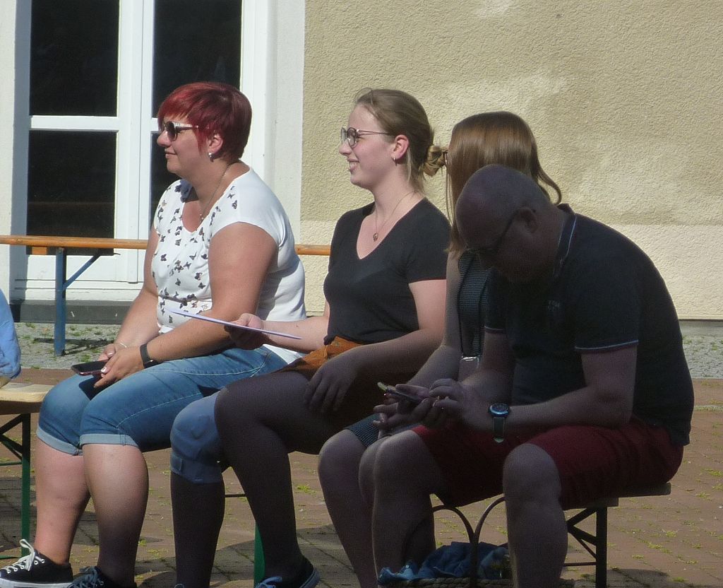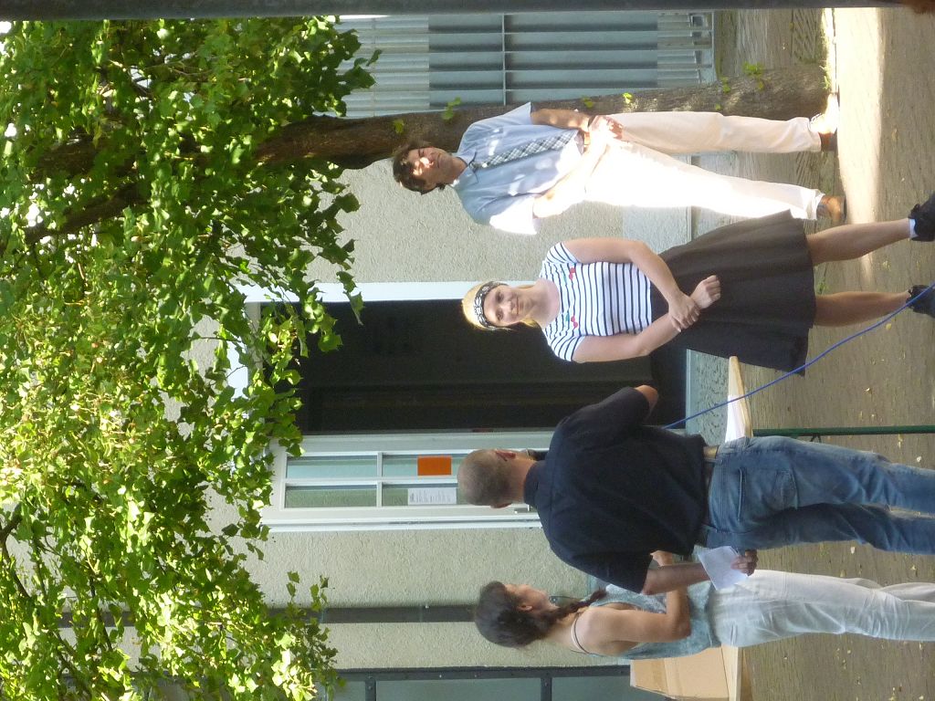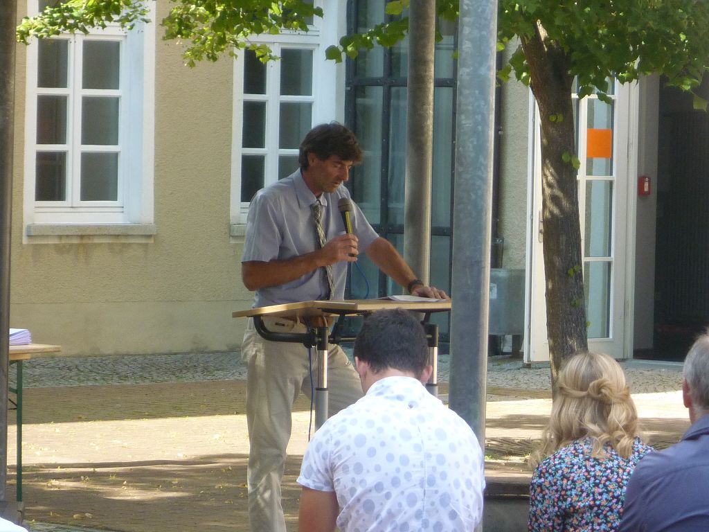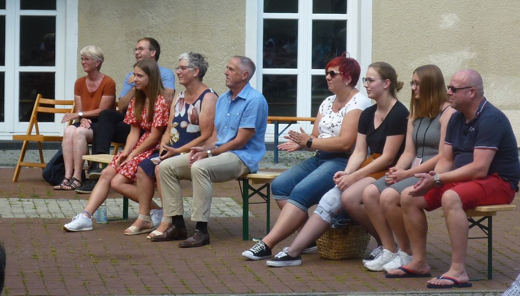 zu ihren Schützlingen gesammelt und sorgten mit ihren launigen Sprüchen und Geschichtchen während der Zeugnisübergabe und Preisverleihung für viel Heiterkeit bei den nunmehr völlig entspannten Absolventen und ihren Angehörigen, die danach noch gern etwas länger im mittlerweile schön schattigen Pausenhof in Gesprächen verweilten.