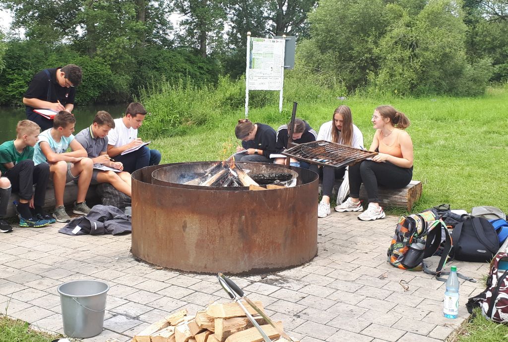 Die Wartezeit überbrücken wir mit verschiedenen Spielen: "Stadt – Land – Fluss", Fußball, ...