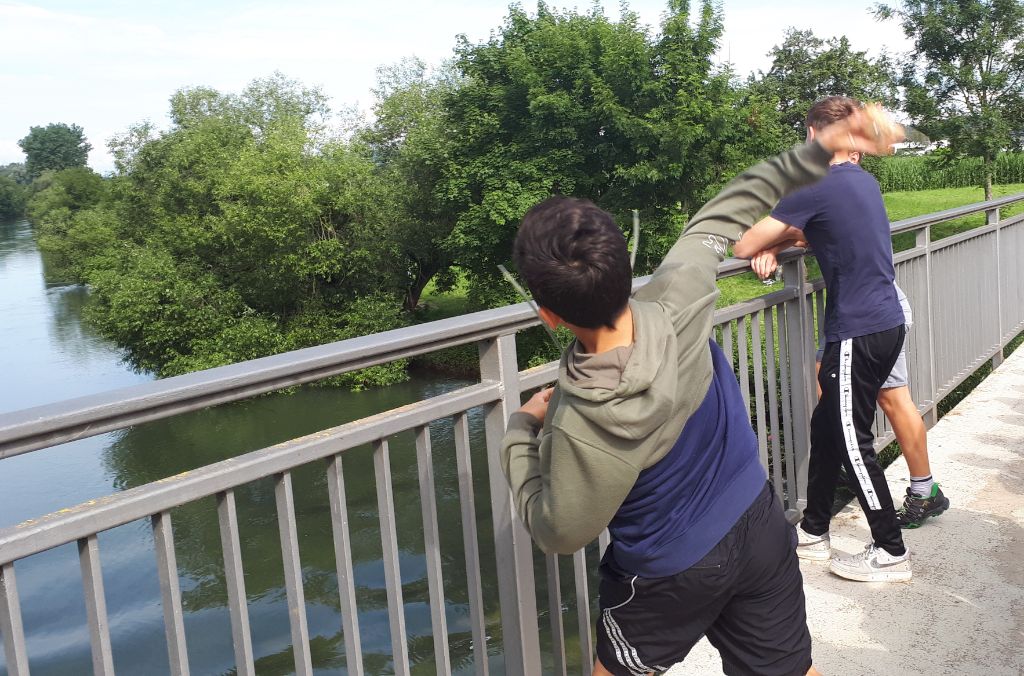 Zacharias befördert den Schlüssel mit einem gekonnten Wurf in die Donau, die ihn auch sofort unter der Brücke hindurch und dann fortträgt.