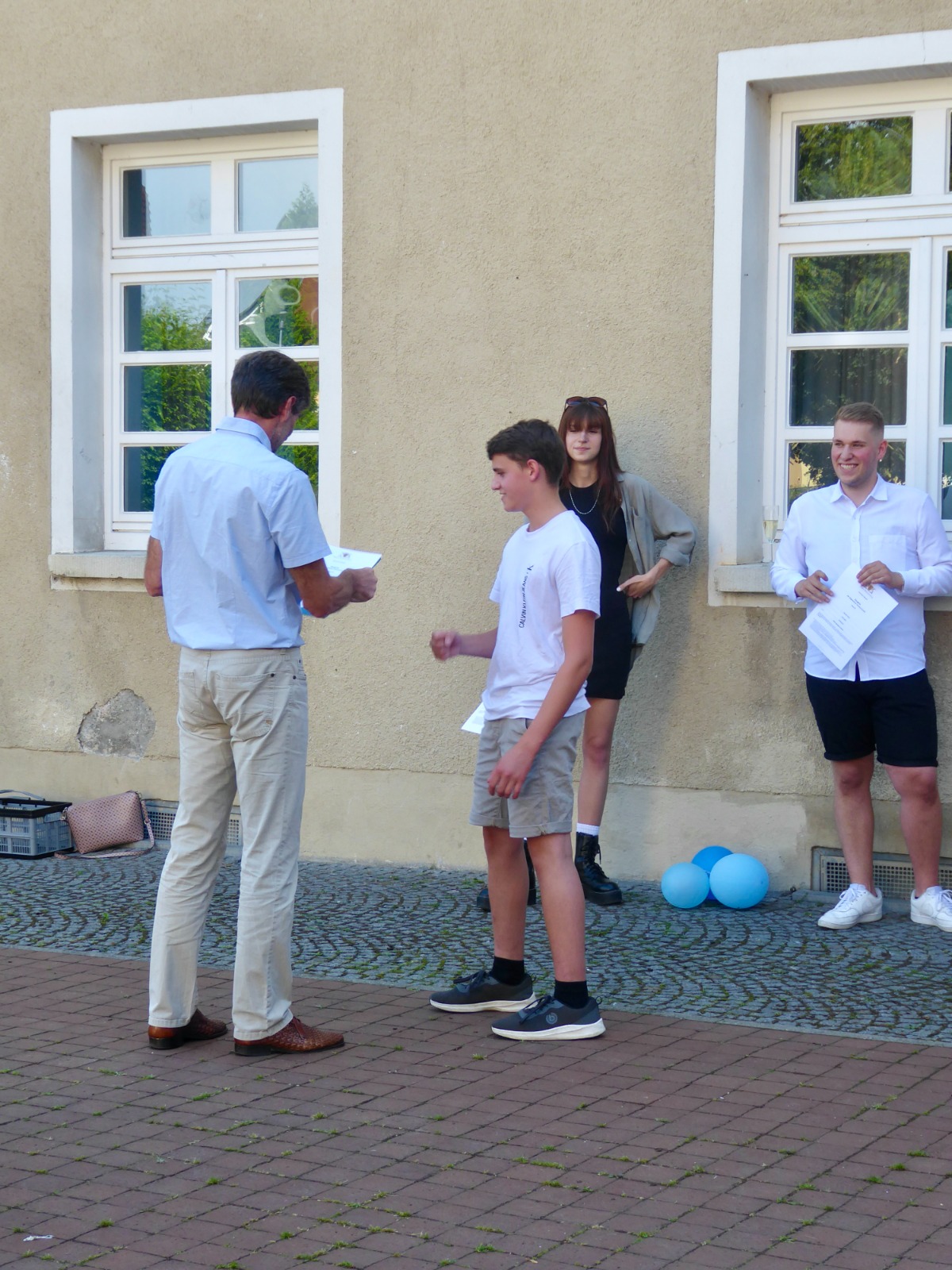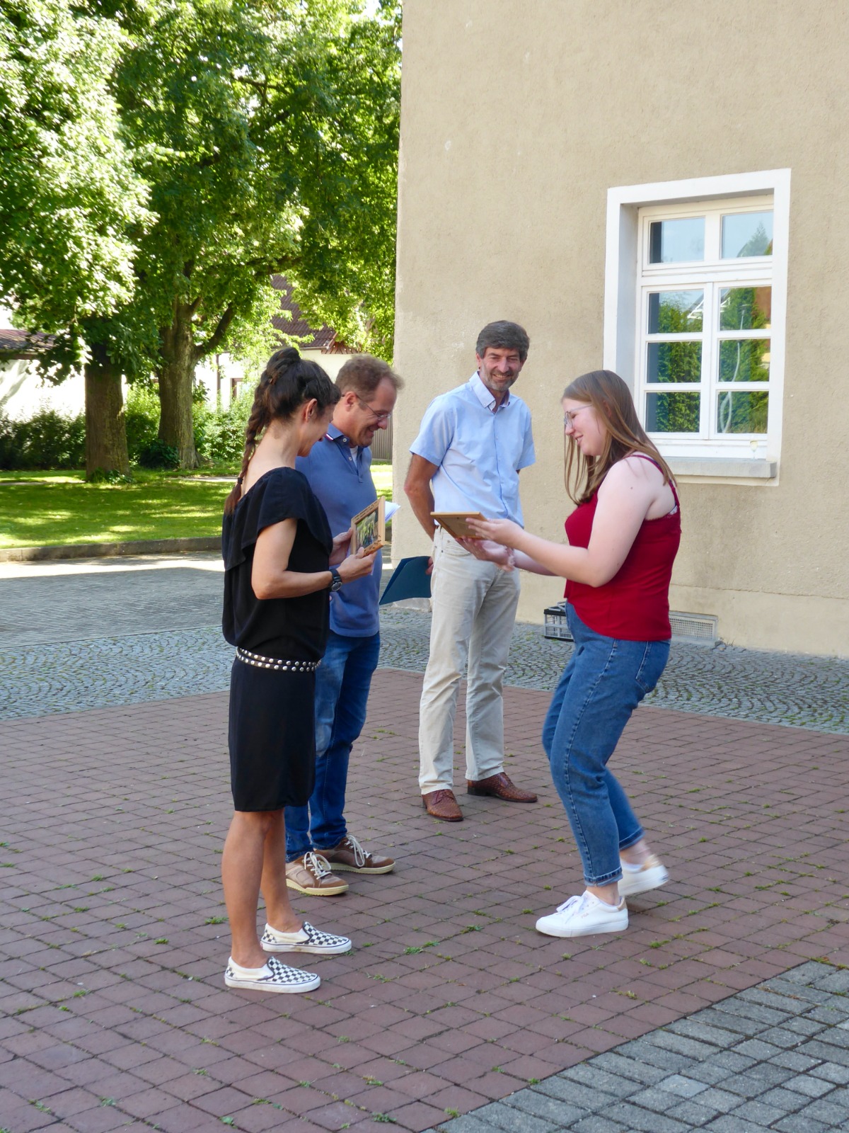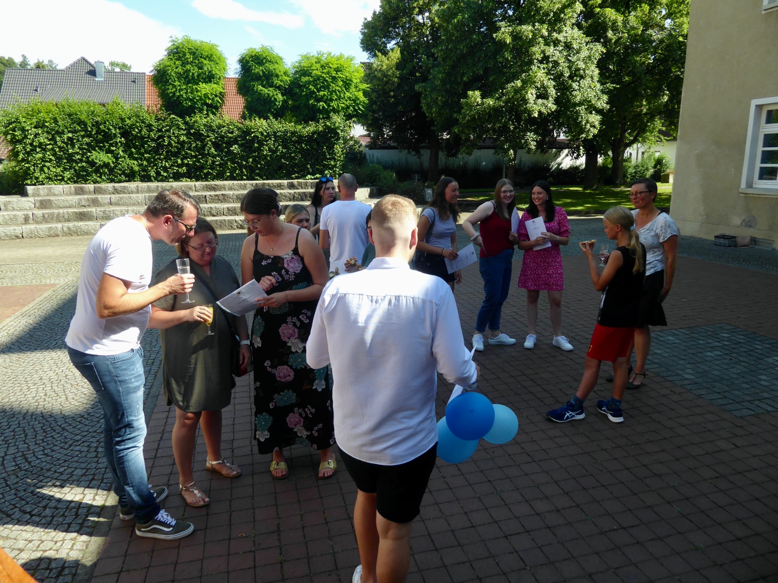 Fröhliche und strahlende Gesichter konnte man an diesem Donnerstagnachmittag auf dem Innenhof des Gymnasiums sehen!