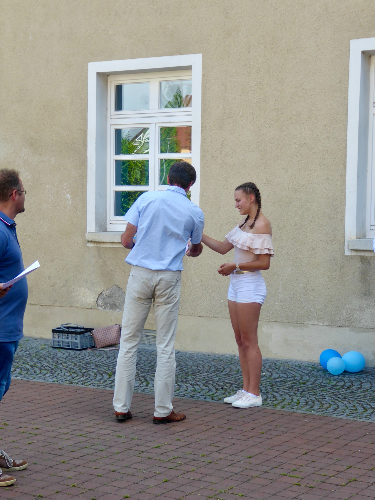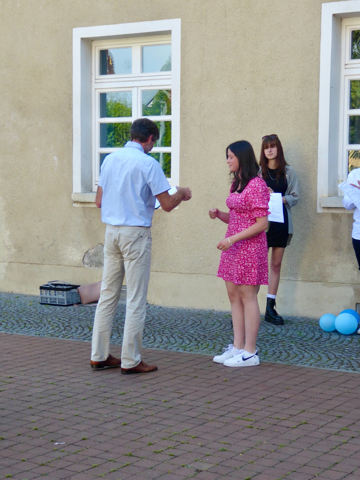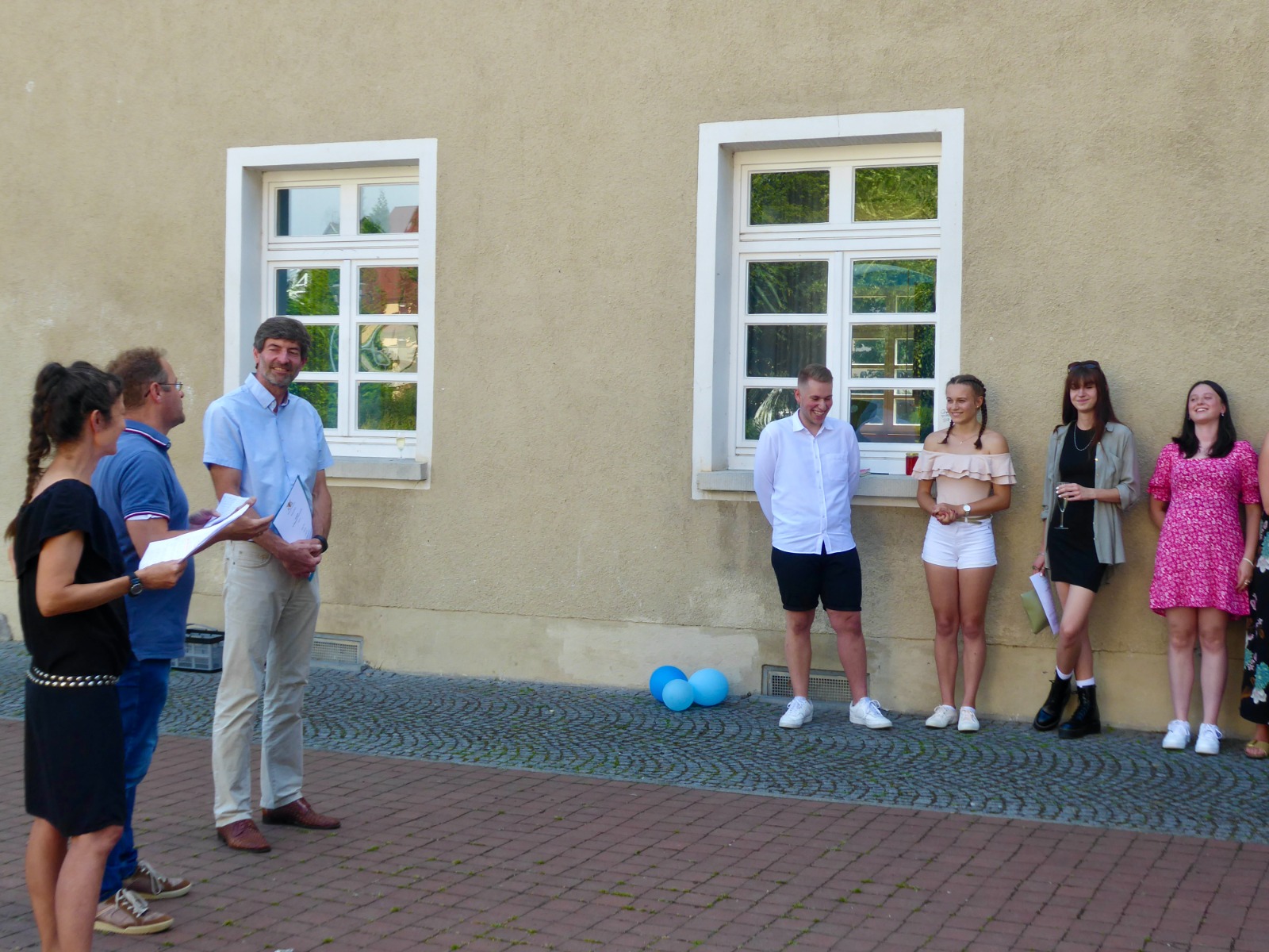 Fröhliche und strahlende Gesichter konnte man an diesem Donnerstagnachmittag auf dem Innenhof des Gymnasiums sehen!