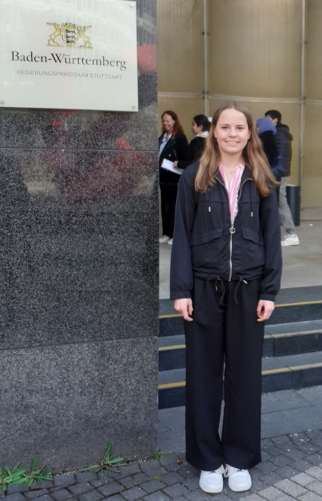 Kira Schultz aus der Jahrgangsstufe 11 wird Vizemeisterin beim „Grenzüberschreitenden Redewettbewerb“ in Stuttgart