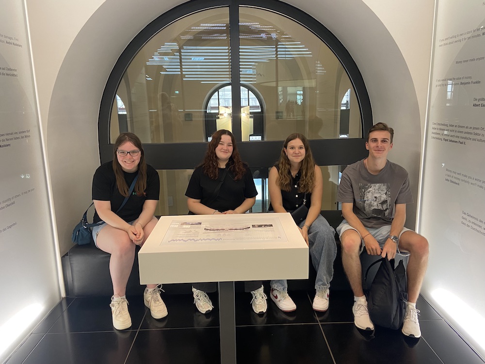 Am Dienstag, den 16. Juli 2024 ging es für den Wirtschafts-Leistungskurs der J1 mit zwei Autos nach Frankfurt am Main los. Nach einer langen, aber unterhaltsamen Fahrt hielt die Klasse mit Frau Moser und Frau Elstner an der Deutschen Bundesbank und dem Geldmuseum an.