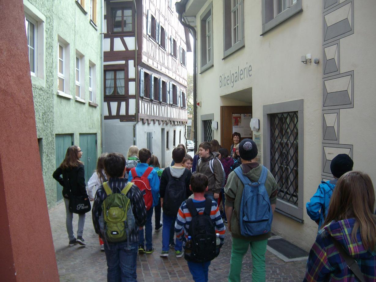 Spannende Stunden verbrachten die Schüler der Klasse 5b und die vier katholischen Schüler der 5a am vergangenen Freitag mit Frau Wagner und Frau Gaa in der Bibelgalerie in Meersburg.