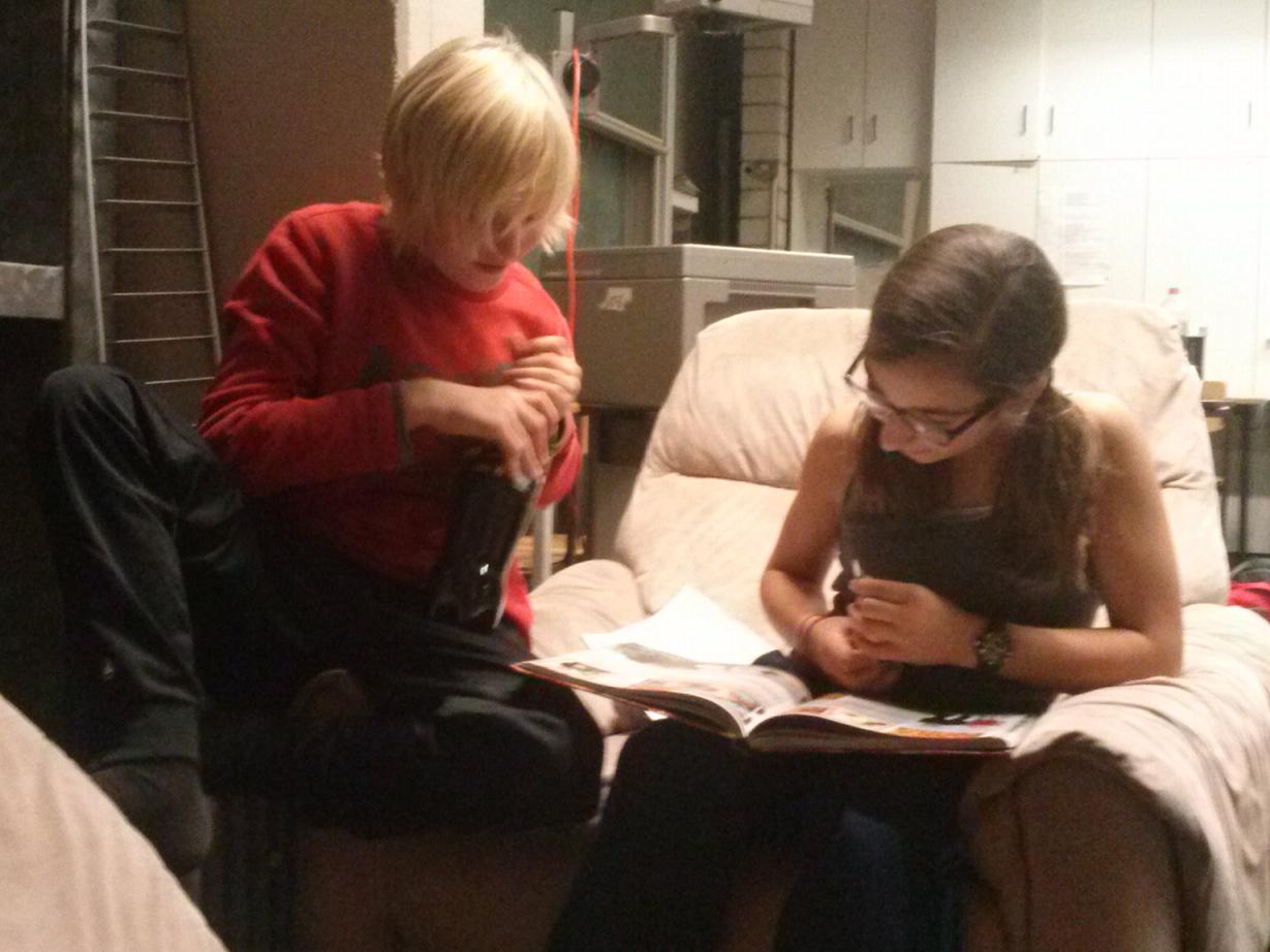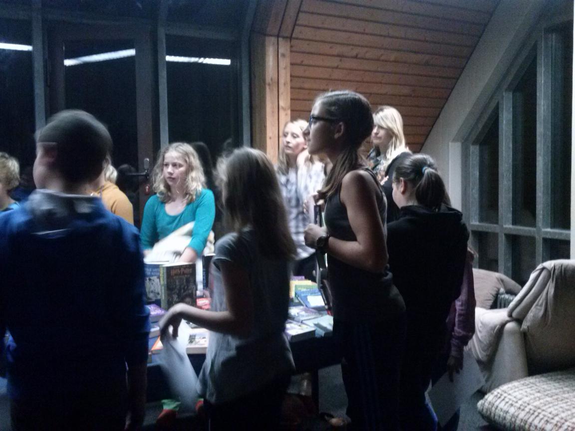 Nachdem jeder seine Pizza aufgegessen hatte, liefen wir zurück in die Schule und Kalle und Frau Birk lasen uns aus "Harry Potter und der Stein der Weisen" vor. Es war witzig. Davor hatten wir noch unsere Klassenbücherei aufgebaut, sie war zwar klein, aber dennoch interessant. Wir entschieden uns, noch die Verfilmung eines Buches anzuschauen und einigten uns auf "Gregs Tagebuch / Von Idioten umzingelt". Der Film war ziemlich witzig, aber auch spannend. Später sang Niklas uns noch das Sandmännchen-Lied vor, damit wir alle gut schlafen.