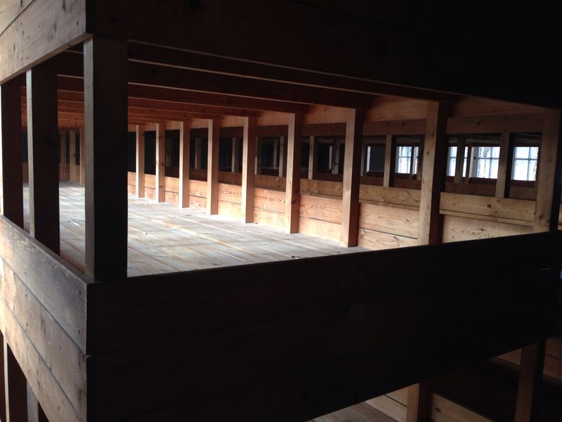 Nun wurden wir in eine nachgebaute Wohnbaracke geleitet. Die orginalen Baracken wurden nach dem Krieg abgerissen. In dieser Baracke konnte man in verschiedenen Abteilen die Verschlechterung der Wohnbedingungen der Gefangenen anschauen.