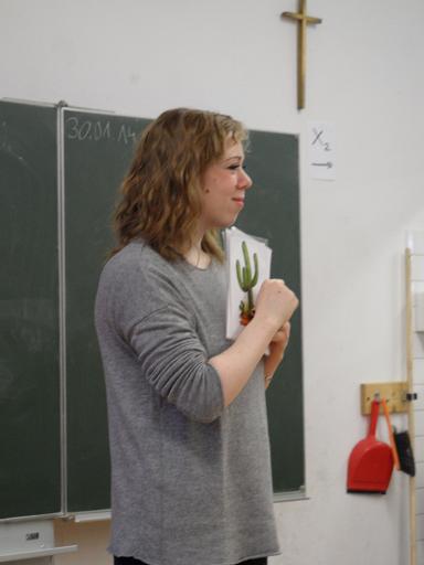 Die Fünftklässler hatten im Vorfeld große Bedenken, ob sie eine „echte“ Französin überhaupt verstehen würden können. Doch schon nach einigen Minuten waren diese Bedenken beiseite gefegt: Über Mimik und Gestik und mit vielen Bildern entstand eine lebhafte Kommunikation zwischen SchülerInnen, die noch kein Französisch konnten und der „echten“ Französin. Umso größer war auch am Schluss der Stunde die Überraschung, als Mme Dubreuil-Krebs doch deutsch sprechen konnte. Das France Mobil war auf jeden Fall wieder eine große Bereicherung im Schulalltag.