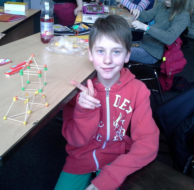 Die Begeisterung während der Projektarbeit war groß, deshalb gab es in einer der nachfolgenden Mathematikstunde noch einen kleinen "Nachschlag": Aus Zahnstochern und Knete durften die Fünftklässler die unterschiedlichsten geometrischen Körper basteln und dabei wiederum ihr Vorstellungsvermögen und ihre Fingerfertigkeit trainieren.