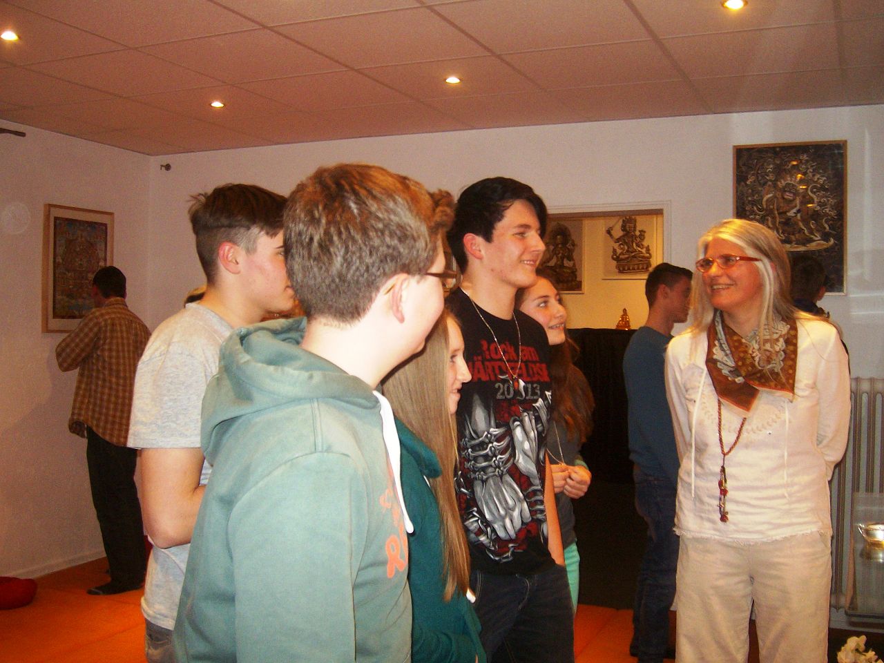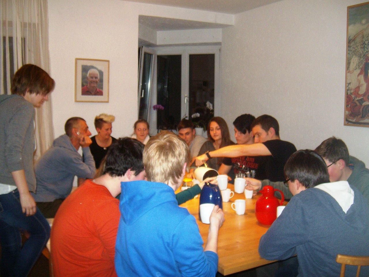 Nach der anschließenden Einführung in eine ihrer Meditationen gab es ein gemütliches Beisammensitzen im Aufenthaltsraum der Gruppe, bei dem wir noch unsere letzten Fragen stellen konnten. Dann ging es für uns auch schon wieder nach Hause, und gegen 23.00 Uhr kamen wir mit vielen neuen Eindrücken, aber auch ziemlich erschöpft wieder am Bahnhof in Mengen an. Ich glaube, jeder konnte das Eine oder Andere von diesem Ausflug mitnehmen.