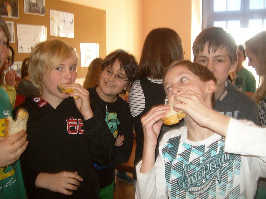 Als alle wieder in dem Museum selbst waren, bekamen sie noch ein jüdisches Brot zu Essen (Challa). Es schmeckte allen wirklich gut. Nun war es schon vorbei. Aber es hat allen gefallen und für manche wird es bestimmt nicht das letzte Mal im Jüdischen Museum in Laupheim gewesen sein.