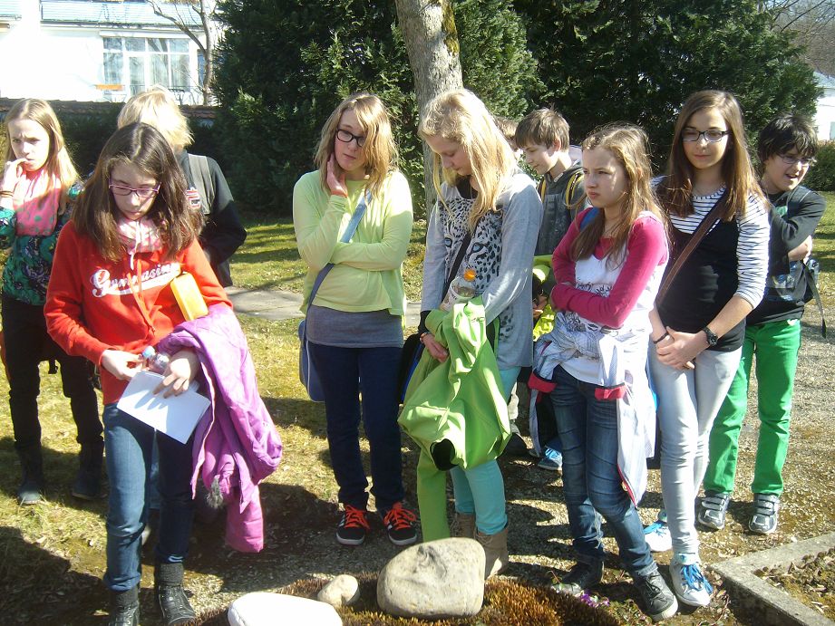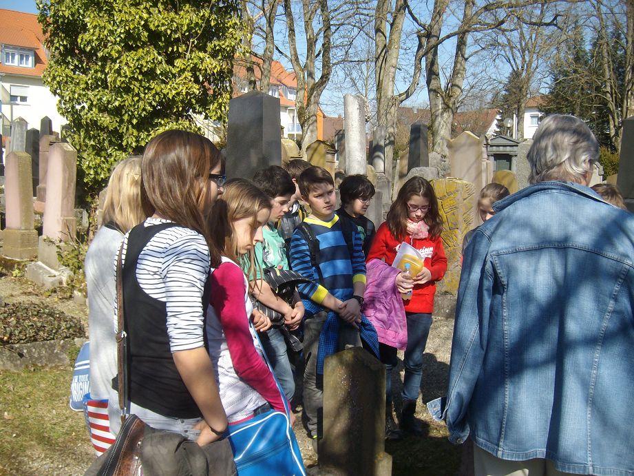 Nach der Lebensgeschichte von Gretel Bergmann liefen alle gemeinsam auf den jüdischen Friedhof. Dort stellte man schnell fest, dass Männer von Frauen und Kindern getrennt liegen. Meist wurden Kinder nicht mal begraben, sondern in ein anderes Grab mit hinein gelegt. Auf den meisten Grabsteinen steht: Seine Seele sei eingebunden in das Bündel des Lebens (hebräisch: תהיה נפשו/נפשה צרורה בצרור החיים). Und noch eine Besonderheit ist, dass nicht sehr viele Blumen zu sehen sind, nur Steine, die auf den Grabstein gelegt worden sind.
