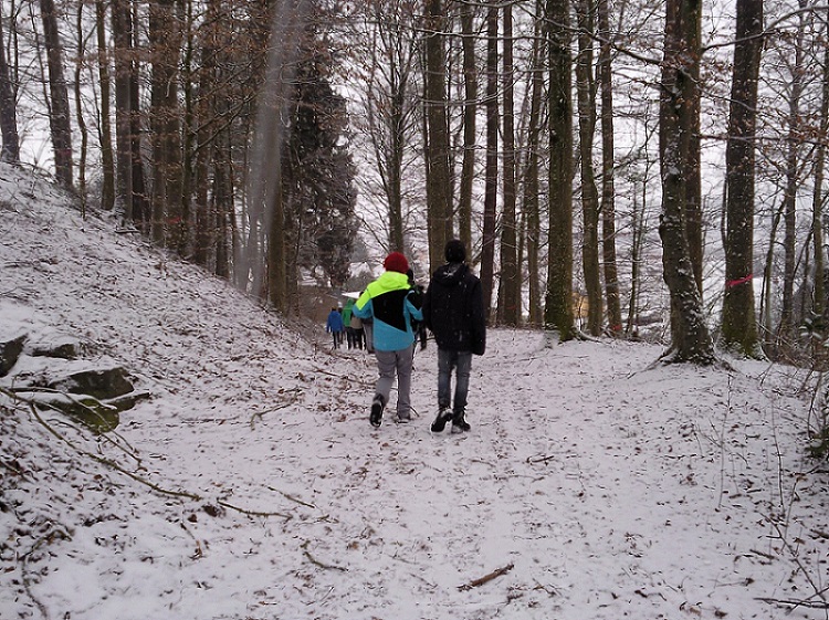 Wieder aus der Ablachhalle vertrieben - diesmal von der Bürgerversammlung - fand die 8. Klasse in der letzten Woche Unterschlupf unter freiem Himmel: Sie machten kurzerhand eine Winterwanderung, abschließend noch zum Missionsberg. Hier ein paar Fotos: