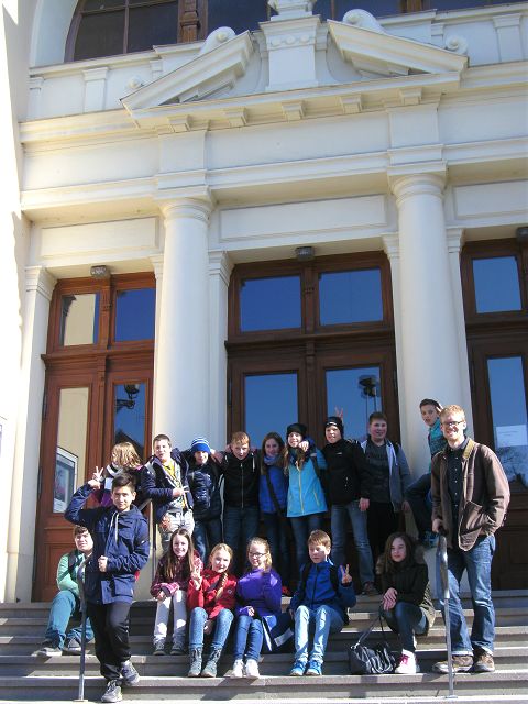 Gemeinsam mit ihrer Englischlehrerin Frau Seeger und Mr Finley machten sich die Sechtsklässler Anfang März auf den Weg zu einer englischsprachigen Theateraufführung in Ravensburg. Das "TNT Theatre Britain" bot den Schülern eine Vorstellung von Peter Pan. Während der siebzigminütigen Vorführung zogen sich die insgesamt vier Schauspieler immer wieder so schnell und geschickt um, dass man erst beim Schlussapplaus bemerkte, wie wenig Personen tatsächlich auf der Bühne gestanden hatten.