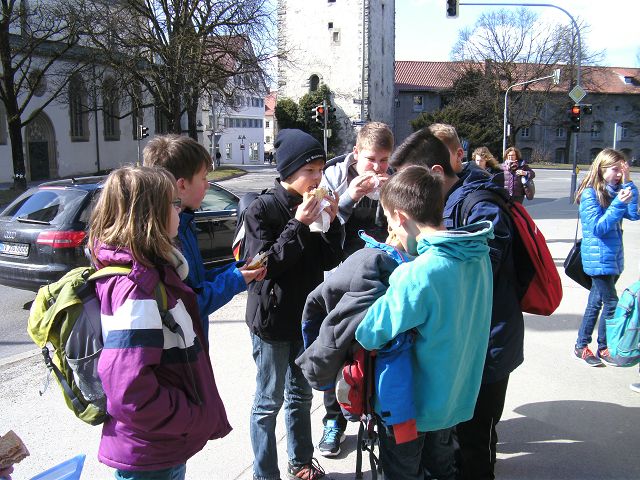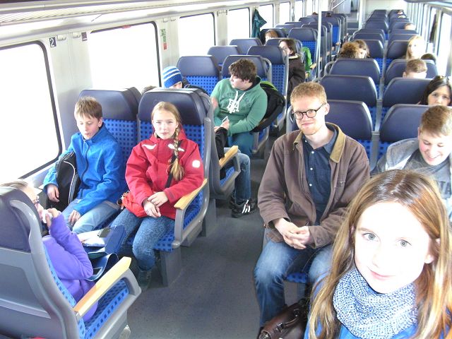 Schon die die Zugfahrt war sehr lustig, und zur großoen Freude der Schüler blieb vor und nach dem Theater noch genügend Zeit, um gemütlich durch Ravensburg zu schlendern. Mister Finley nutzte die Zeit auch, um spannende Geschichten zu erzählen und zu erklären, worum es in "Peter Pan" geht. Einigen gefiel an diesem Tag besonders das ehrwürdige Konzerthaus mit viel Stuck und Gold, in dem die Veranstaltung stattfand. Zum Stück selber gingen die Meinungen etwas auseinander, von sehr gut bis langweilig. Der anschließende Döner hingegen kam bei allen Hungrigen sehr gut an, genauso wie das Eis beim netten Eisverkäufer in der Ravensburger Schokoladenmanufaktur.