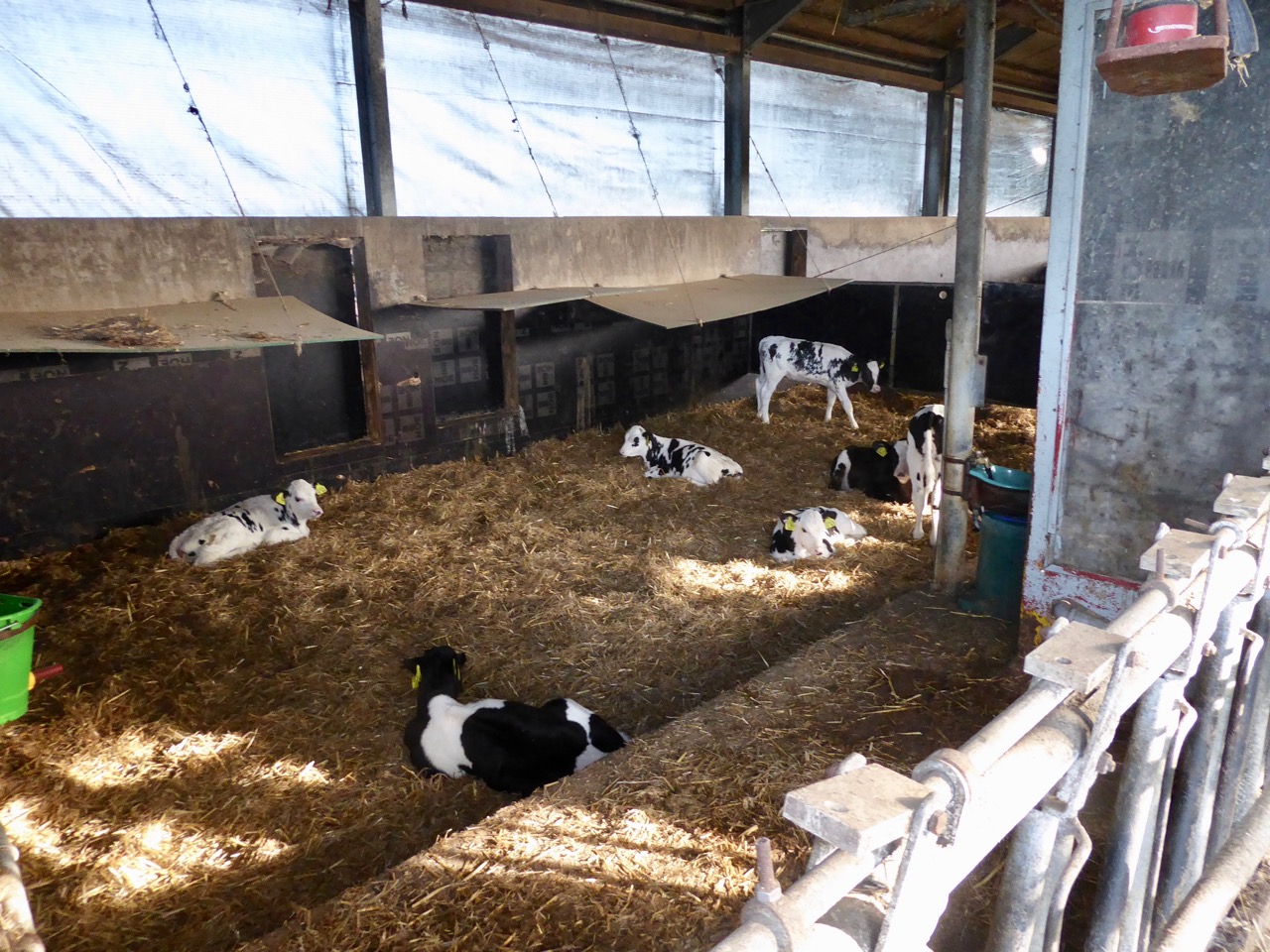 Hier durften wir ausprobieren, wie anstrengend es früher war, die Kühe täglich von Hand zu melken: