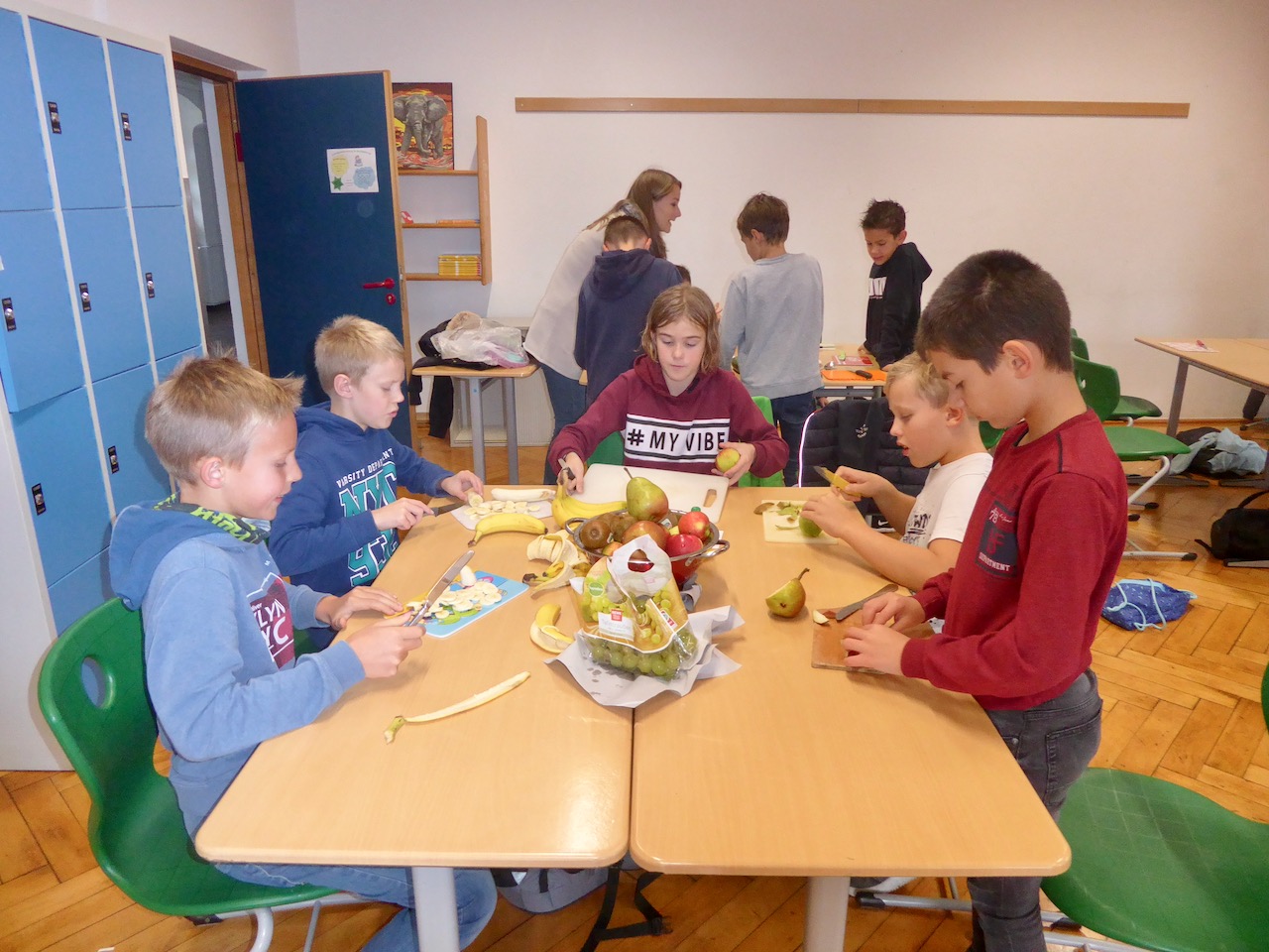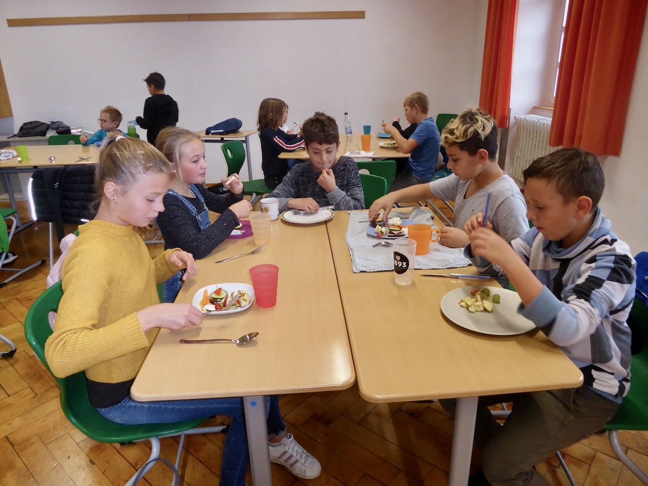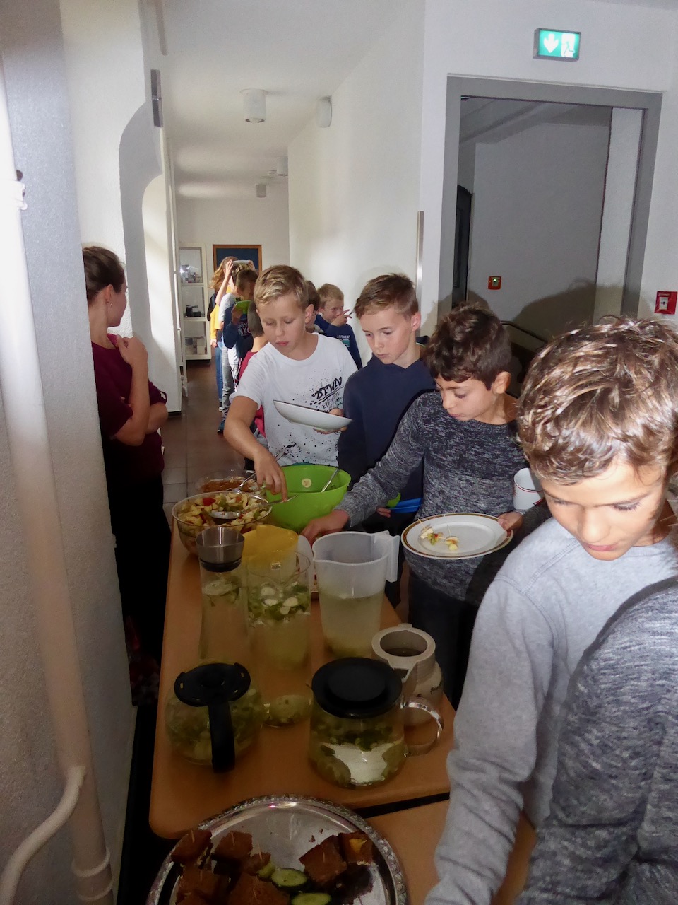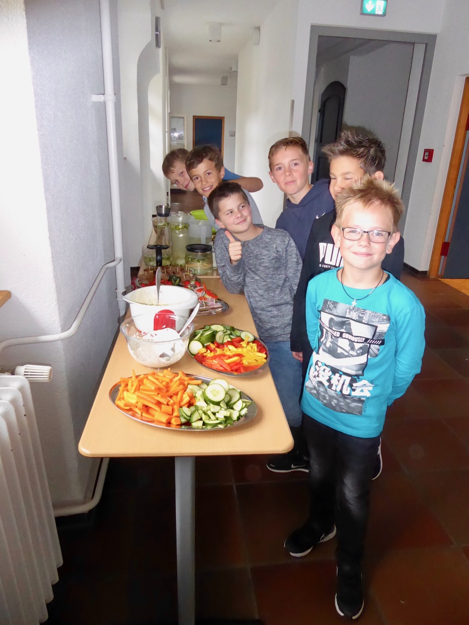 . Dabei sollten die Kinder die drei Meter hohe Wand erklimmen und von dort Dosen mit Sandkissen abwerfen. Was zuerst leicht aussah, war in Wahrheit für viele (auch die Lehrkraft) schwer durchzuführen. Doch dies war nicht die einzige Hürde, die es zu meistern galt. Auch bei vielen anderen Spielen kamen wir ins Schwitzen, wie z. B. die Glöckchen an den Füßen, mit denen man besonders leise klettern musste, oder das Partnerklettern, bei dem zwei Personen durch ein Band miteinander verbunden waren und so die Wand erklimmen mussten. Dabei konnten die Kinder nicht nur ihre sportlichen Fähigkeiten ausbauen, sondern die Freundschaft untereinander stärken, denn es ging auch darum sein Team anzufeuern oder sich gegenseitig Tipps zu geben.