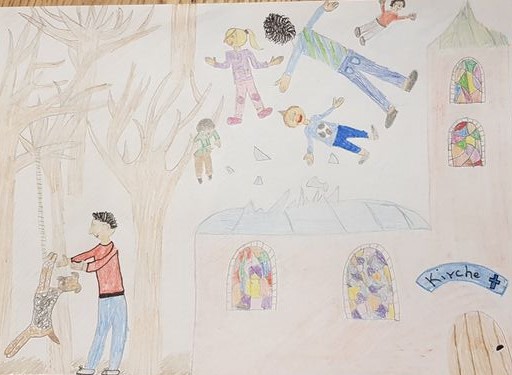 Die SchülerInnen bekamen von Herrn Reininger den Auftrag, die Geschichte "Tobias und die Lügner" zu lesen, sich eine Situation daraus auszusuchen, und diese zu zeichnen.
