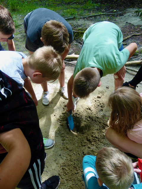 Sie packten auch ihre Grillsachen aus und dann ging es daran, den Schlüssel zu verstecken. Frau Tritschler hatte uns zuvor in der Schule gesagt, wenn wir den Schlüssel jetzt schon verlieren, hätten wir den Ausflug umsonst gemacht. Zum Glück hatte Elia aus unserer Klasse ihn gut aufbewahrt. In seiner Socke!! Der Grillplatz war neben einem Wald und deswegen konnten wir den Schlüssel dort gut vergraben: Amelie hatte uns eine Schaufel mitgebracht und einer unser Kameraden grub ein kleines Loch und dort warfen wir den Schlüssel hinein. Ein paar Schüler kamen mit, einige blieben aber auch am Grill. Einige Minuten später fuhren wir auch schon los. Die Klasse 6a blieb noch eine Weile, da sie erst später gekommen war.