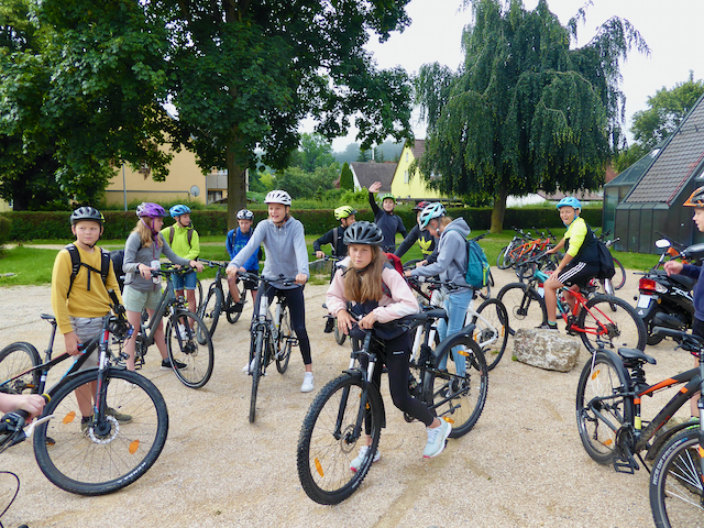 Morgens zur 2. Stunde fuhr die Klasse mit dem Fahrrad zum Grillplatz nach Heuberg. Dort angekommen, knisterte auch schon das Feuer, welches Milans Opa gemacht hatte. Zuerst grillte die Klasse und dann waren viele von ihnen im Wald. Einige Zeit später fanden sie eine kleinen „Bunker“. Jeder wollte hinein und so holten alle ihre Handys und schalteten die Taschenlampe an. Man konnte wenig sehen, jedoch war in diesem „Bunker“ auch wenig. Der Bunker wurde schnell wieder uninteressant und somit verschwanden einige wieder in den Wald.