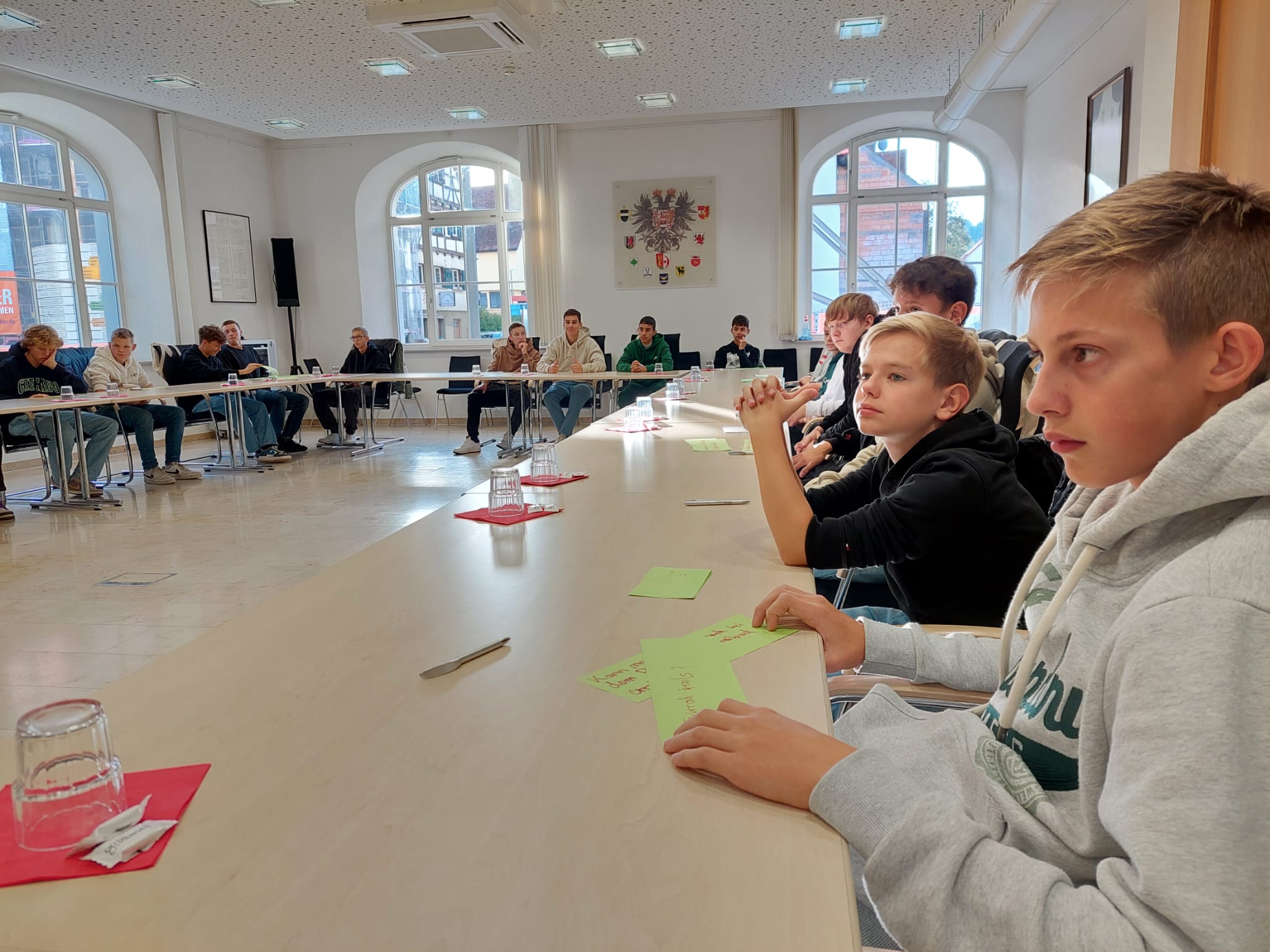 Am Montag, den 16. Oktober machte die Klasse 9 einen Ausflug ins Rathaus, begleitet von Frau Neuf. Dort durften wir unserem Bürgermeister Stefan Bubeck Fragen über die Stadt Mengen bzw. über seinen Beruf als Bürgermeister stellen. Zu Beginn erzählte Herr Bubeck vieles