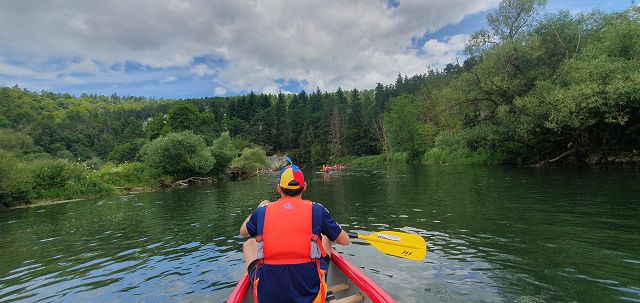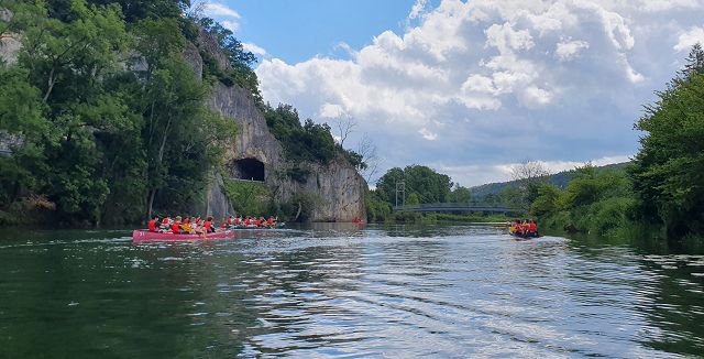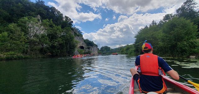 Am 11.07. war die 9. Klasse als Klassenabschluss beim Kanufahren. Die ersten beiden Stunden waren Unterricht nach Plan. Ab der großen Pause wurde mit der Klasse bis um ca. 9:50 Uhr gespielt. Danach ging es los zum Bahnhof, um erst mit dem Zug, und dann mit dem Bus zu fahren. In Gutenstein ging es dann los: