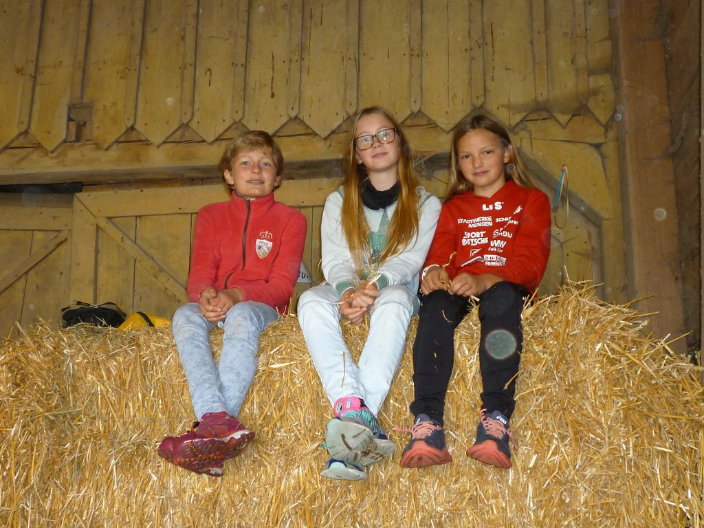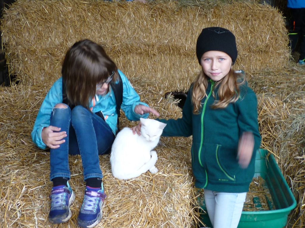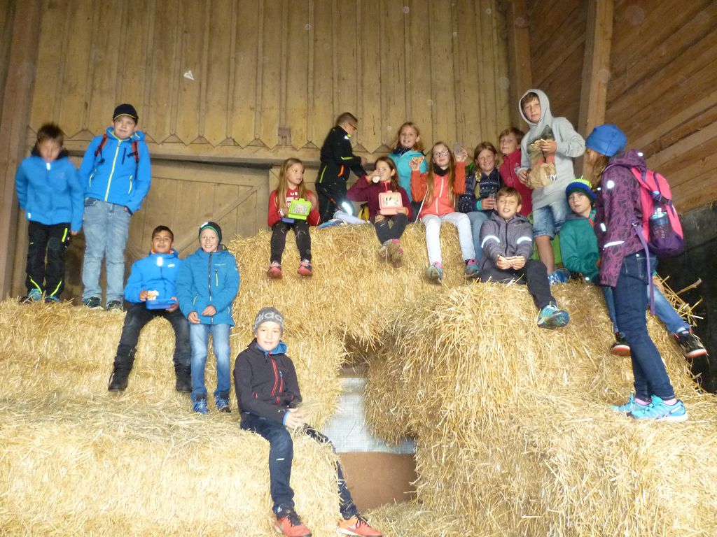 Danach verging die Zeit wie im Fluge: Einige Kinder führten das Pony aus, andere statteten den Hühnern einen Besuch ab oder streichelten die Katze. Anschließend tobten die Kinder im Stroh herum, in dem es sogar einen Geheimgang gab. Bevor sie sich wieder auf den Heimweg machen konnten, gab es dann noch einen sehr lustigen und langen Moment, bei dem sich alle gegenseitig abklopften und das Stroh aus den Haaren und der Kleidung herausfischten... Einiges ist aber trotzdem im Klassenzimmer gelandet, wo die Kinder zum Abschluss dieses tollen Tages noch eine Runde Rotes Sofa spielten.