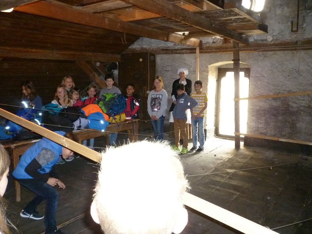 Dabei kam der Köchin des Schlosses eine tragende Rolle zu: Sie führte die Kinder nämlich mehrere versteckte Gänge entlang, die die Hofdame gar nicht kannte, unter anderem die steile Wendeltreppe, die vom Esszimmer des Schlosses direkt zur Küche führte. Hier gelang es den Kindern schlussendlich auch, das Geheimnis des Verbrechens zu lüften - und wer jetzt wissen möchte, wer den Grafen ermordet hat, muss die Schüler der 5b fragen!