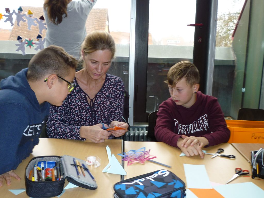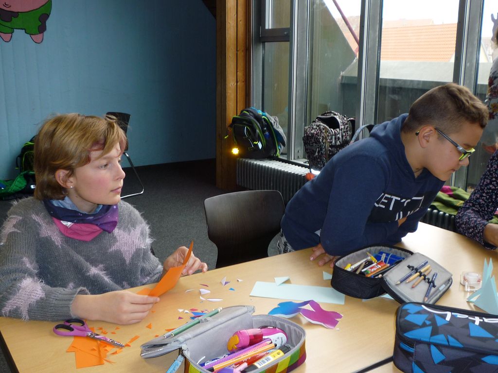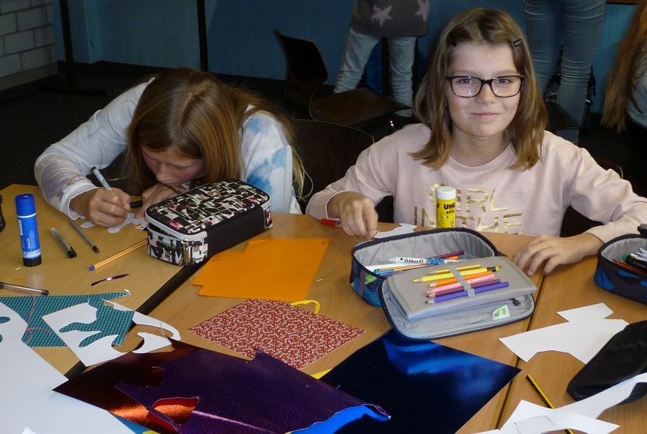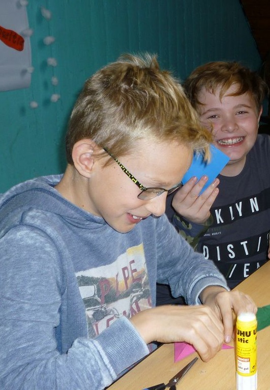 Pünktlich zum ersten Advent bastelte die Klasse 5b am Donnerstag, dem 29.November gemeinsam mit ihren vier Buddys aus der 9.Klasse verschiedene Weihnachtsdekorationen. Aus buntem Papier wurden Schneemänner ausgeschnitten und kleine Weihnachtssterne gefaltet. Ganz besondere Sterne ergaben
