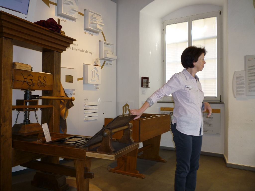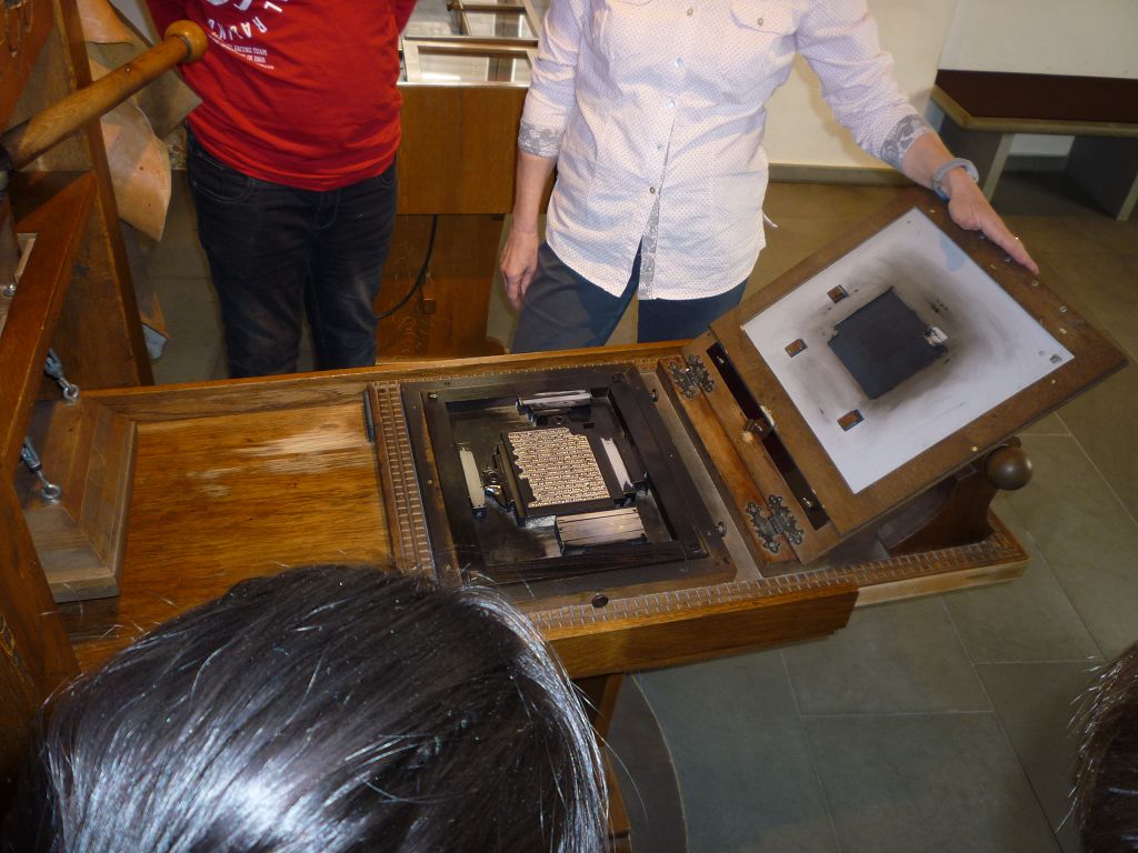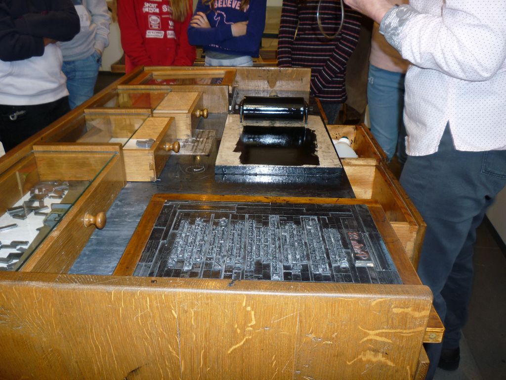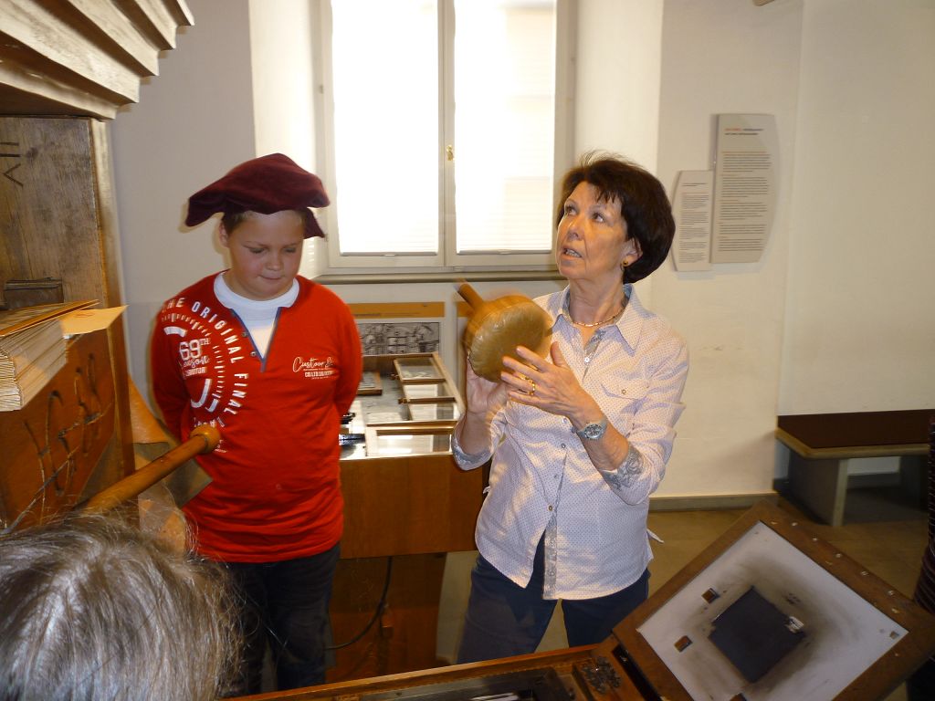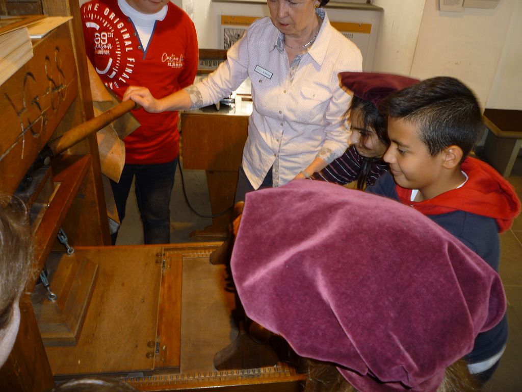 Auch die Druckerwerkstatt faszinierte uns: der Buchdruck ermöglichte erstmals die massenhafte Verbreitung von Wissen, Nachrichten und Meinungen – und wir selbst waren aktiv beim Drucken eines Psalms dabei!